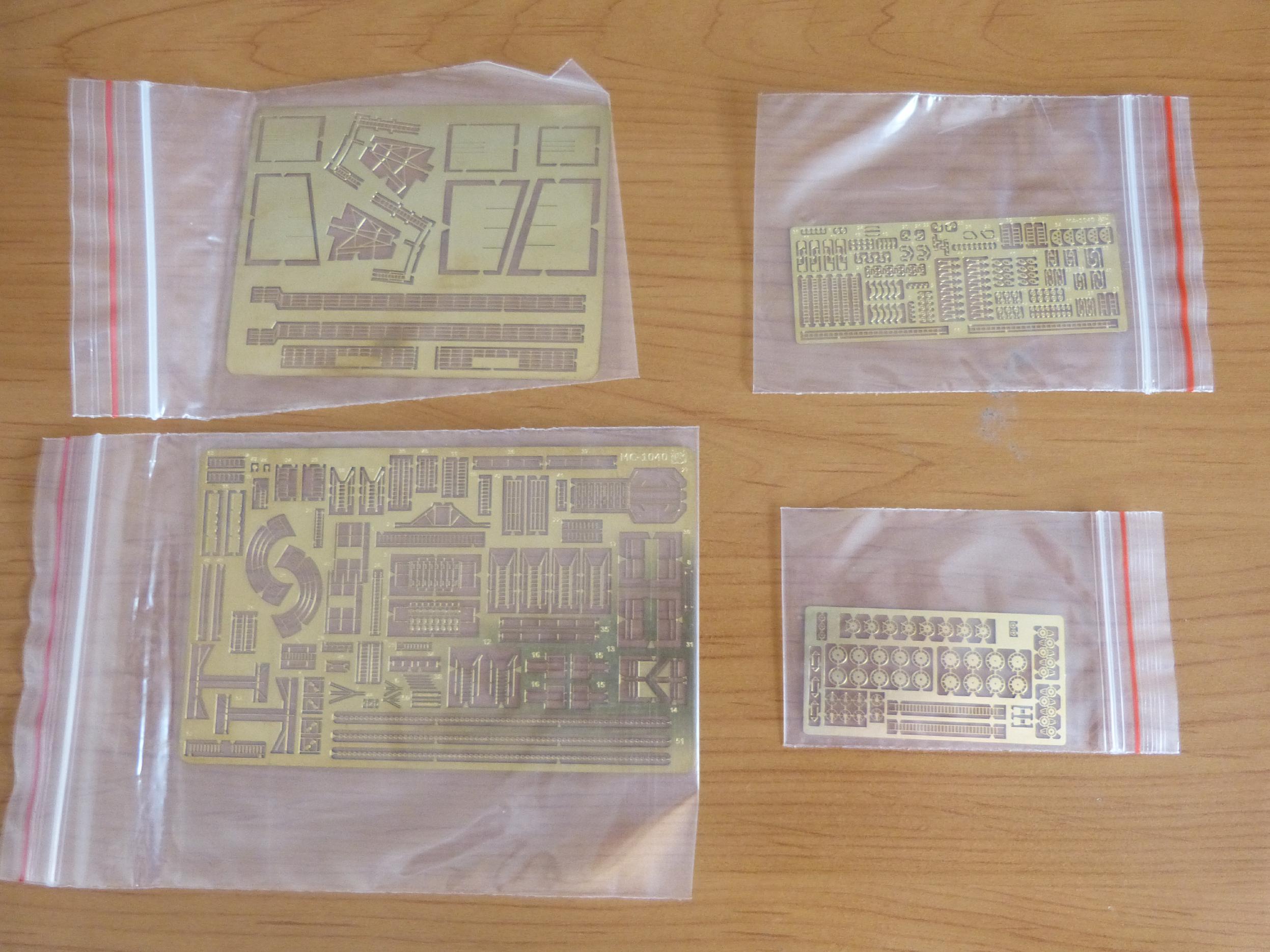 In mehreren Beuteln befinden sind die 4 Sets mit den Fotoätzteilen. Diese wirken wie vom Hersteller gewohnt sehr filigran und bilden natürlich eine tolle Ergänzung, aber vom Umfang her können sie mit einer Platinum-Edition von Revell natürlich nicht mithalten. Was mir sofort auffiel ist das komplette Fehlen der Relings für das Haupt- und Aufbaudeck. Da ist auch laut Anleitung überhaupt nix vorgesehen! Schon mal ein dicker Minuspunkt!