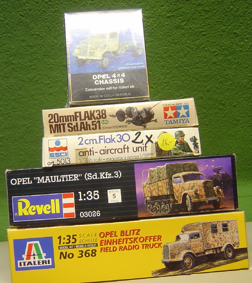 Ich habe schon mal eingekauft. Den Koffer für das Fahrgestell, das Maultier für die Pritsche, Flak ist klar bzw. nicht