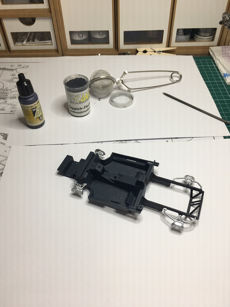 Da dieses Fahrzeug nicht nur zu testzwecken was die Lackierung angeht herhalten soll – werde ich auch das Flocking ausprobieren.