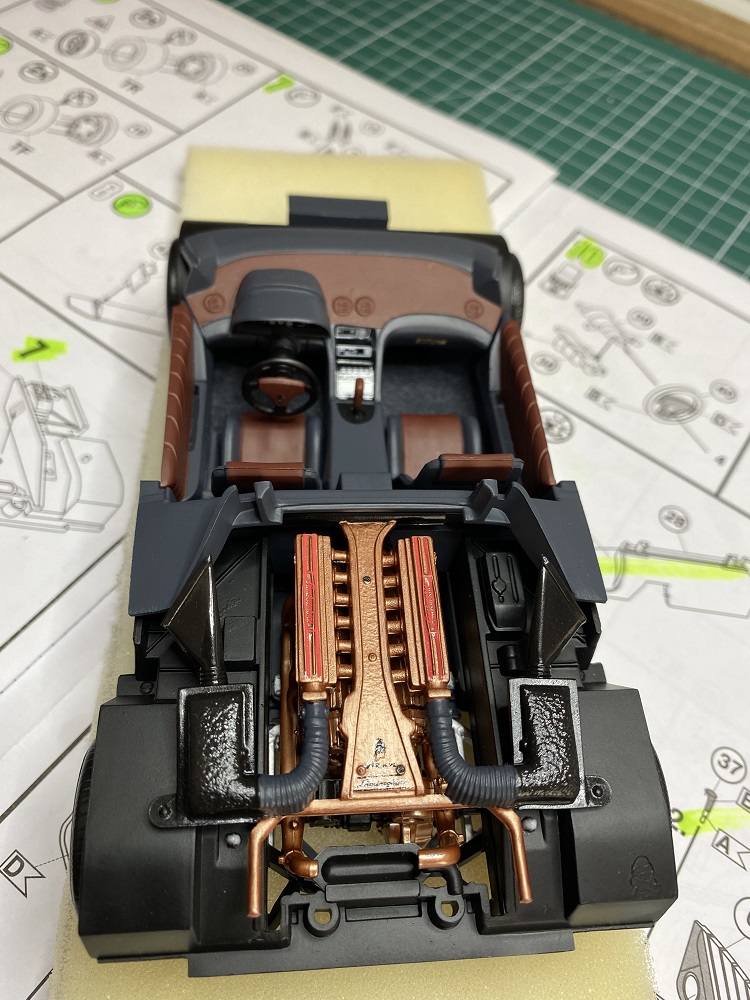 Der Innenraum und die Motorabdeckung sind dann noch fertig verklebt worden – und jetzt darf erst mal alles in Ruhe trocknen