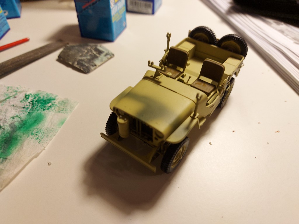 Zunächst mal hat der Jeep eine Lackierung bekommen, auch hier wieder das middle Stone, dieses Mal aber auch Olivgrün für die Streifen
