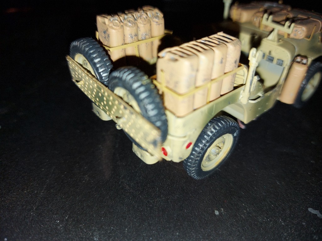 Auch die Kanister selber sind jetzt soweit bemalt und an Ort und Stelle, leider liefert Dragon nicht den selben Umfang wie der Tamiyabausatz. Mit den Ätzteilen werden auch die Haltegurte dargestellt.