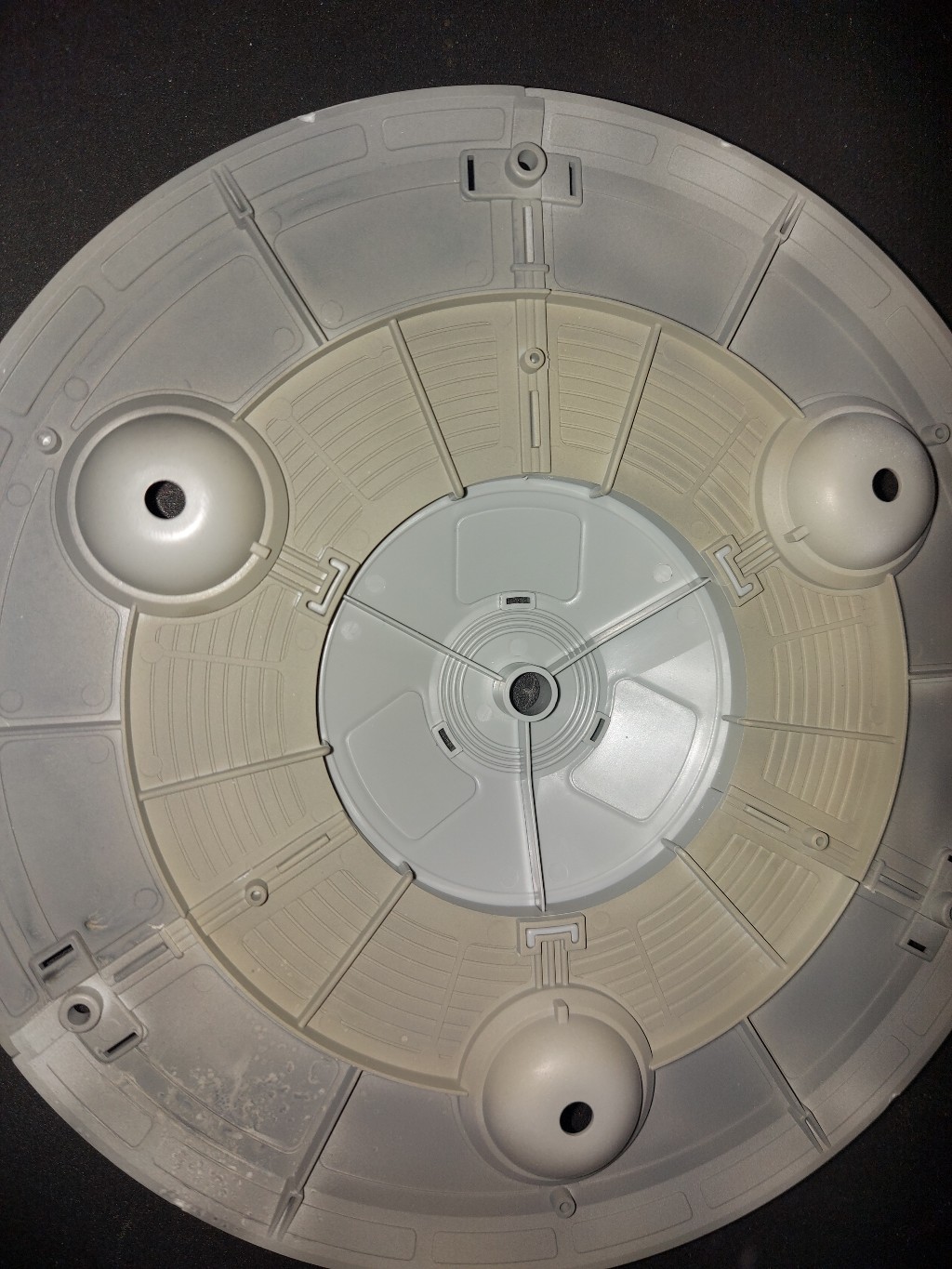 Ja was kam dann noch? Insgesamt ist der Bausatz ähnlich den Zvezda-Steckbausätzen, viel Leim ist icht nötig. An der ein oder anderen Stelle, spätestens aber an der äußeren "Haube" gerät dieses Konzept aber an seine Grenzen und sorgt für große Spalte und Höhenunterschiede, die auch erstmal entschärft werden müssen. Die Waffentürme werden nur eingesteckt, sitzen aber so fest, dass diese sich nicht mehr drehen lassen. Die Fahrwerksbeine finde ich persönlich auch zu einfach gehalten, bei der Preisklasse müssen einfach, auch wenn es ein fiktives Fluggerät ist, mehr Teile und ausgeprägtere Details vorhanden sein.