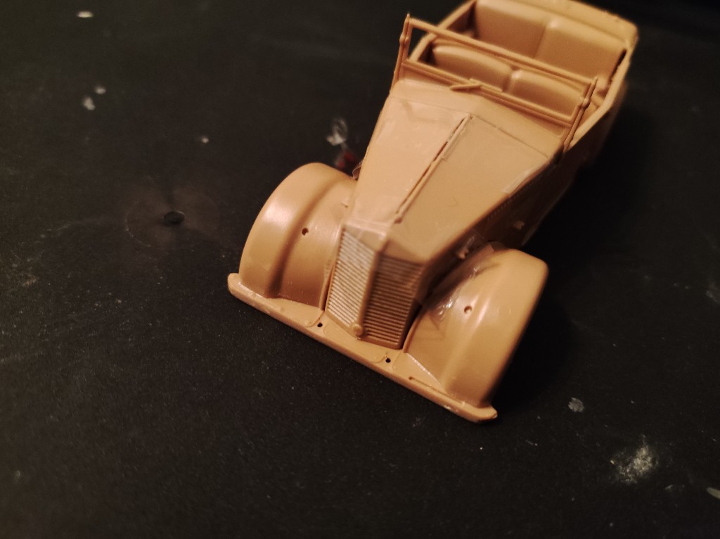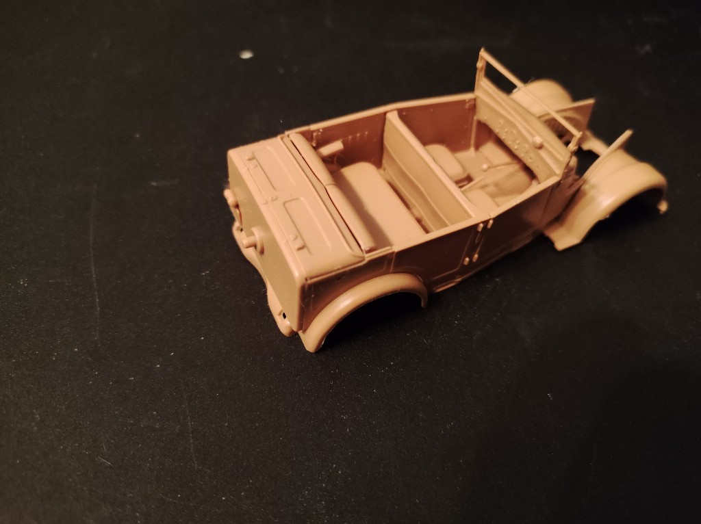 Der Bau ging so weiter, dass hinten das Heck geschlossen wurde. Aus taktischen Gründen baue ich die Karrosse einzeln und verkleben sie erst nach dem Lackieren mit der Unterseite.