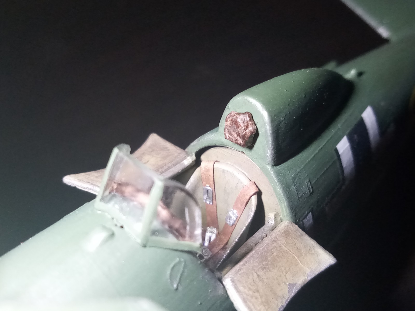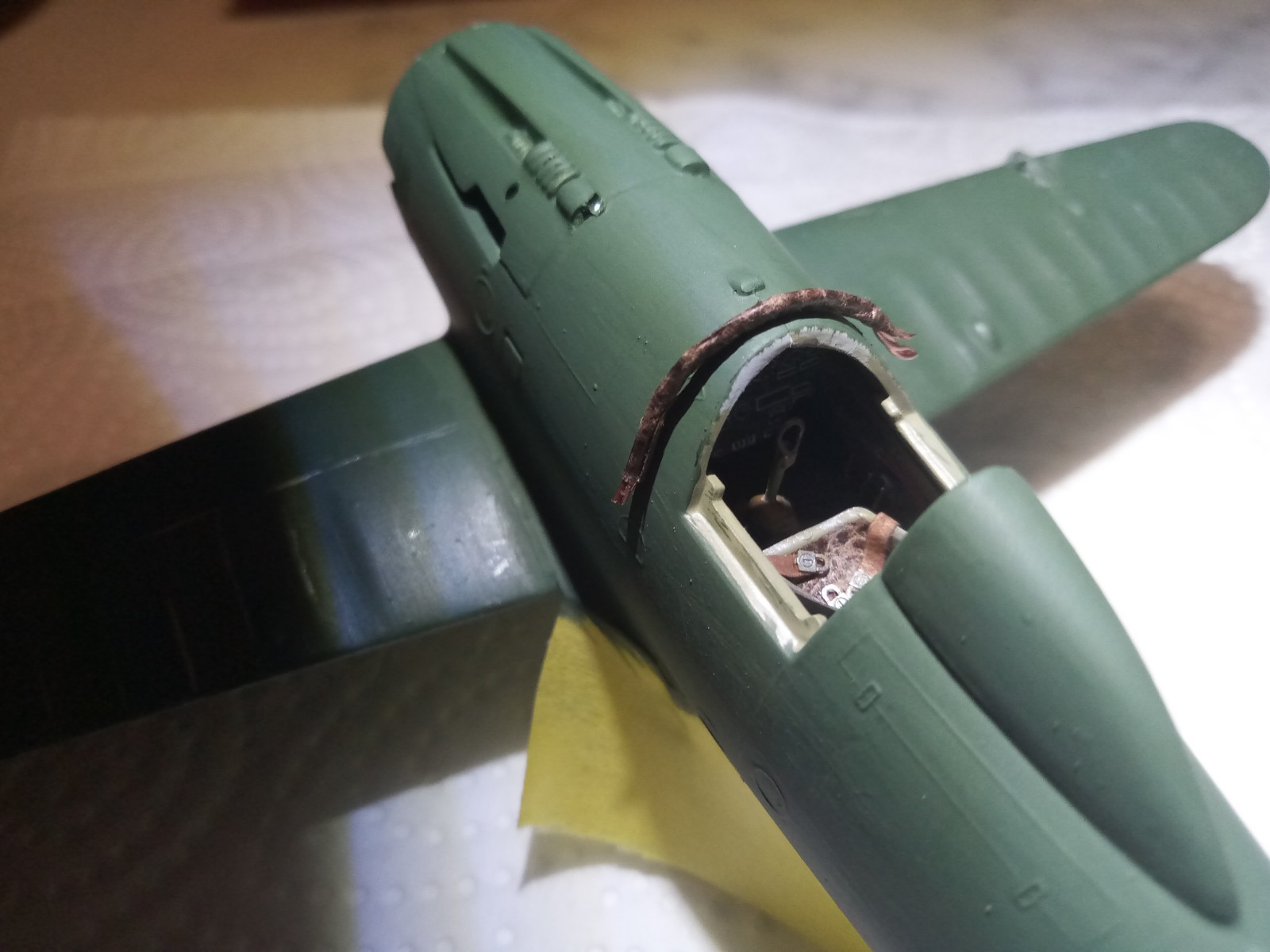 Der Polster/Anstoßschutz kam an das Cockpit, ebenso die Kopfstütze