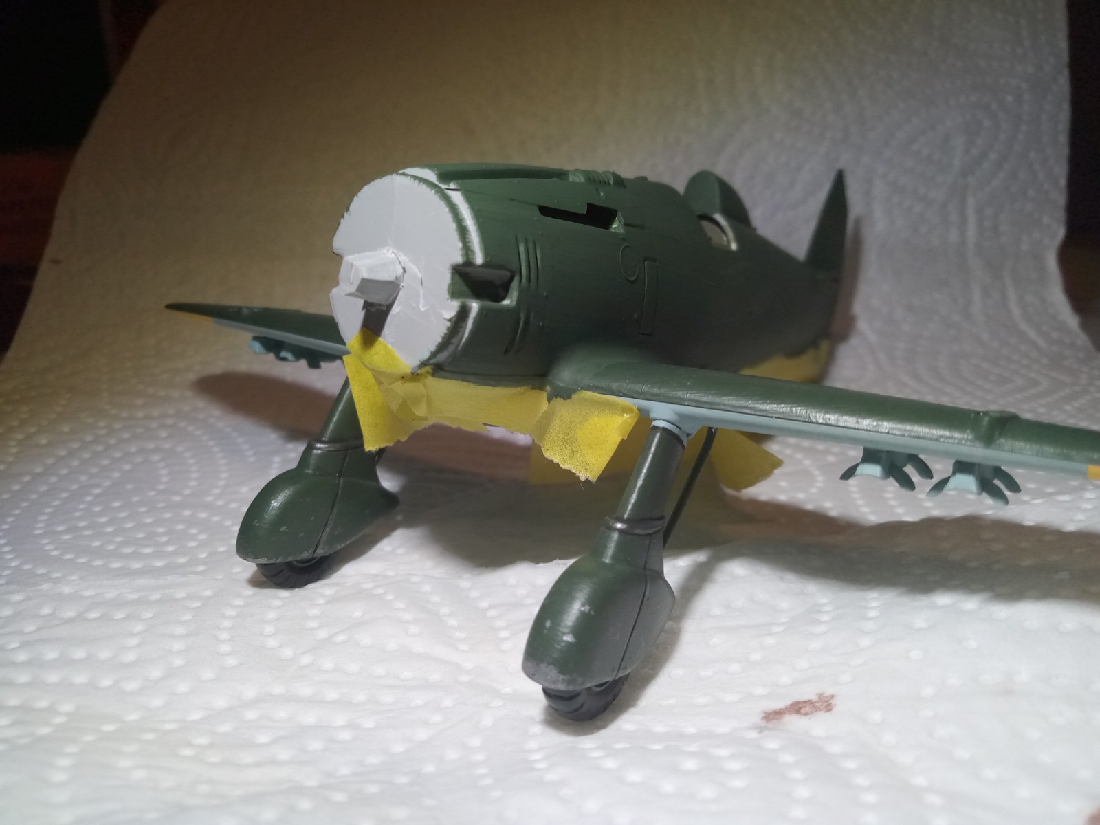 Das Fahrwerk kam an die Henschel. Und der Rumpf wurde mit 2 Anstrichen grün