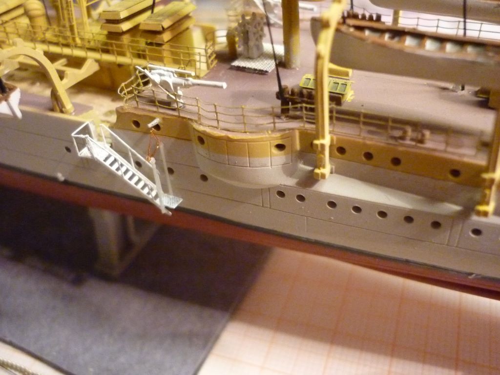 die letzten Arbeiten sind nun abgeschlossen.Ich habe für das Fallreep noch eine Aufhängung gebastelt und befestigt.Desweiteren