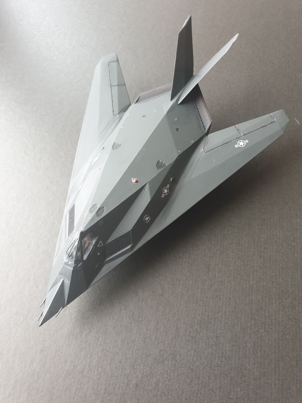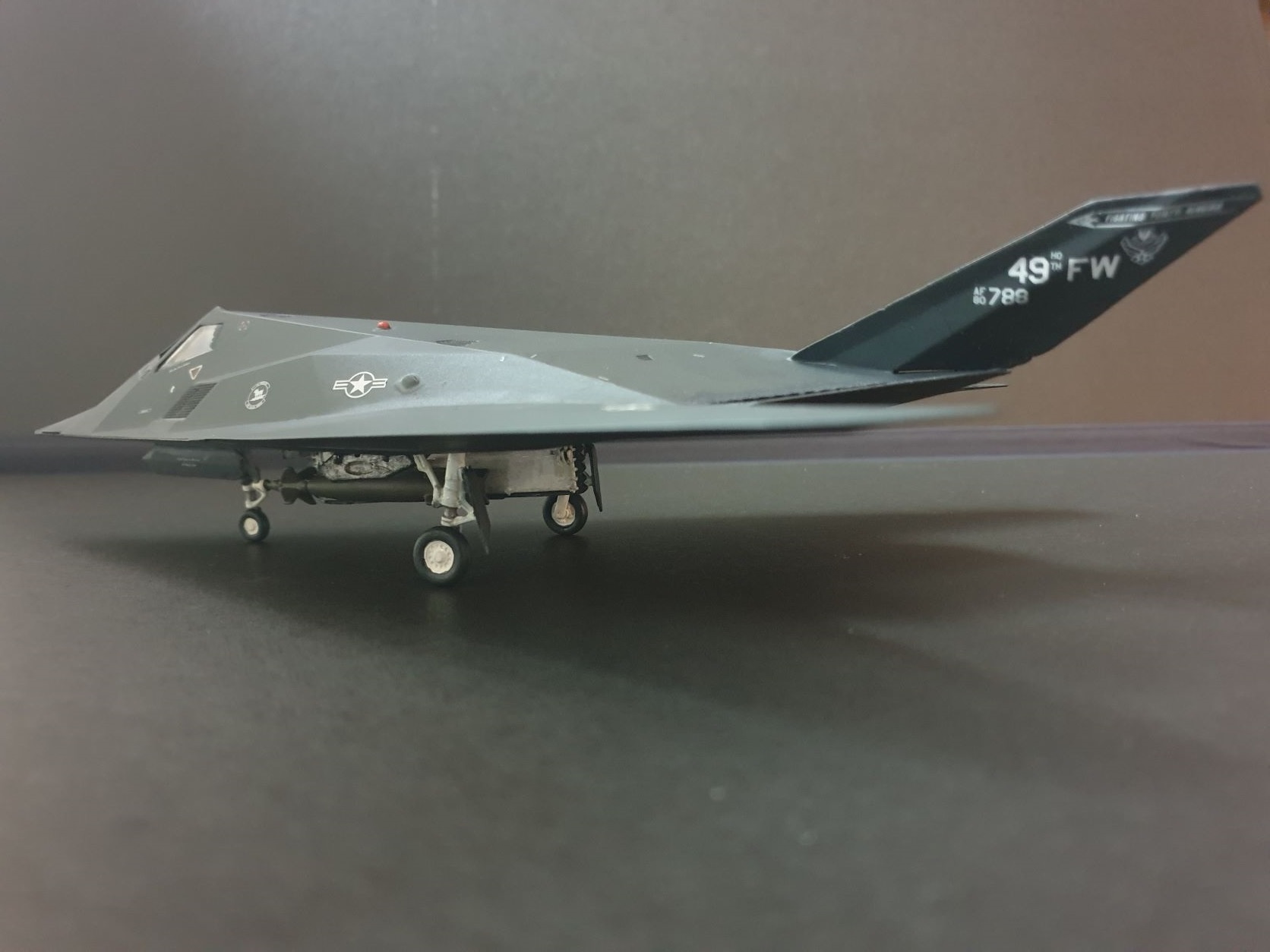 mein erstes Projekt ist beendet. Hier das Modell: Der F-117A Nighthawk von Revell war mein erstes Projekt nach über 20 Jahren. Hier war ich, anders als vor zwanzig Jahren, mit dem dementsprechenden Engagement, Fleiß und den richtigen Materialien am Werk. Der Bausatz ist im Maßstab 1:72 und war somit echt kniffelig für meine noch nicht trainierten Bastelhänden. Aber die 20€ waren gut investiert und es hätte mir nicht weh getan wenn das Modell nichts geworden wäre. Aber ich bin zufrieden.