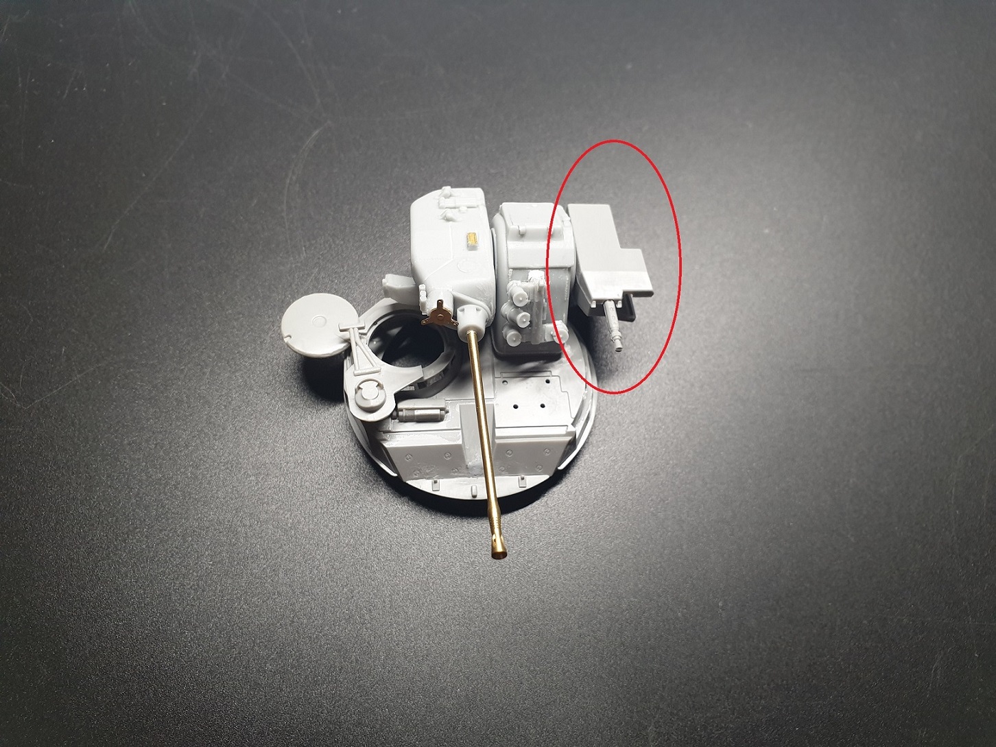 Der rot eingekreiste Teil des Panzerturm A3 ist aus dem Upgrade Kit und wurde auf die Basis des Revell Modellbausatzes verklebt. Hier muss man leider sagen das viele Teile vom Upgrade Kit nicht zu gebrauchen sind. Entweder sind Fehler in der Produktion vorhanden oder der Detailgrad stimmt nicht und sieht beim Modellbausatz von Revell einfach besser aus. Da werde ich euch nächste Woche mal ein paar Beispiele zeigen. Es ist ein wenig ärgerlich bei dem Preis.