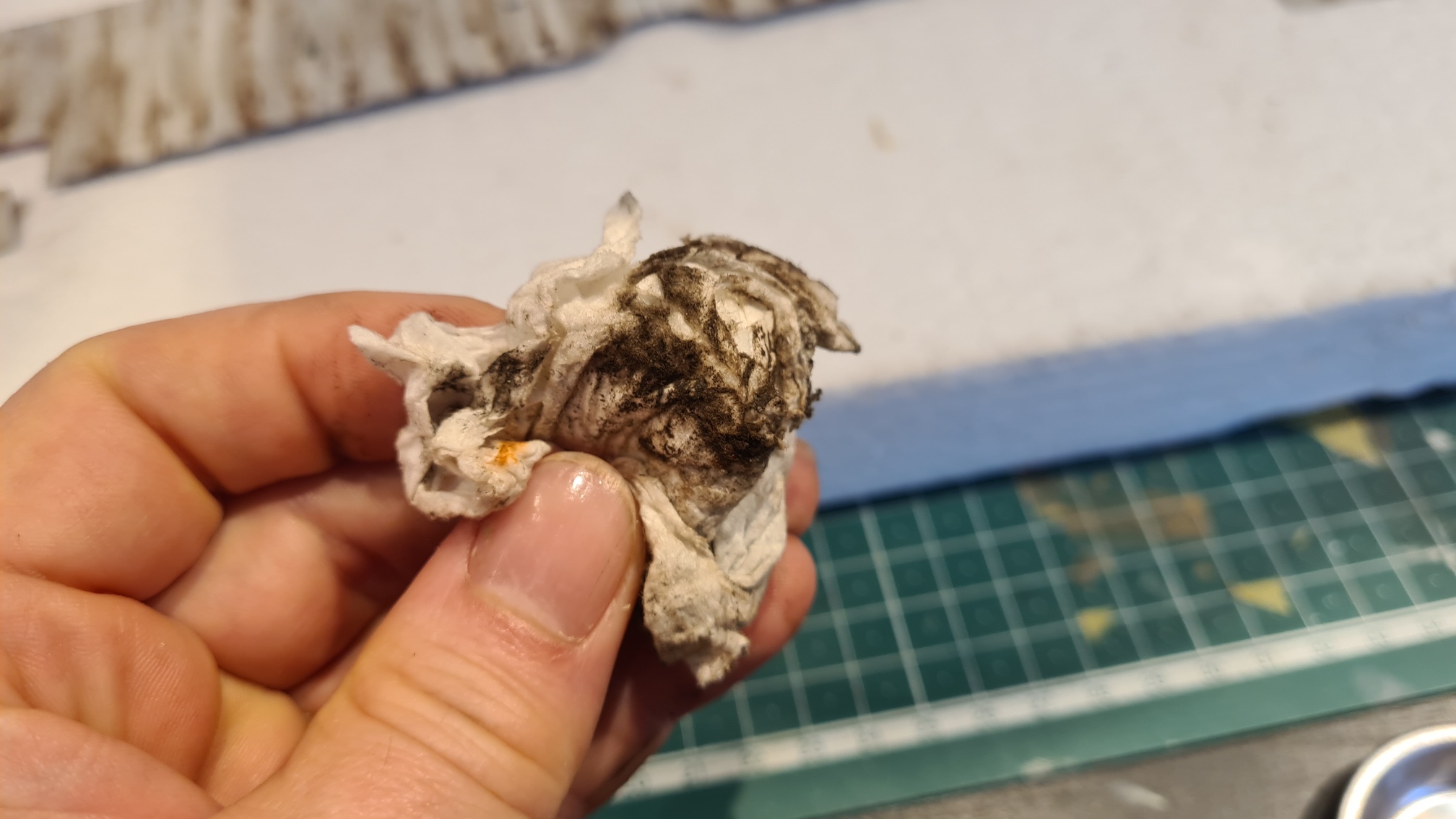 Hier wurde dann mit weißer und schwarzer Farbe retuschiert. Später kam dann noch Dreck drauf. Ich habe mit Panelliner braun+schwarz und Pigmenten rumgespielt