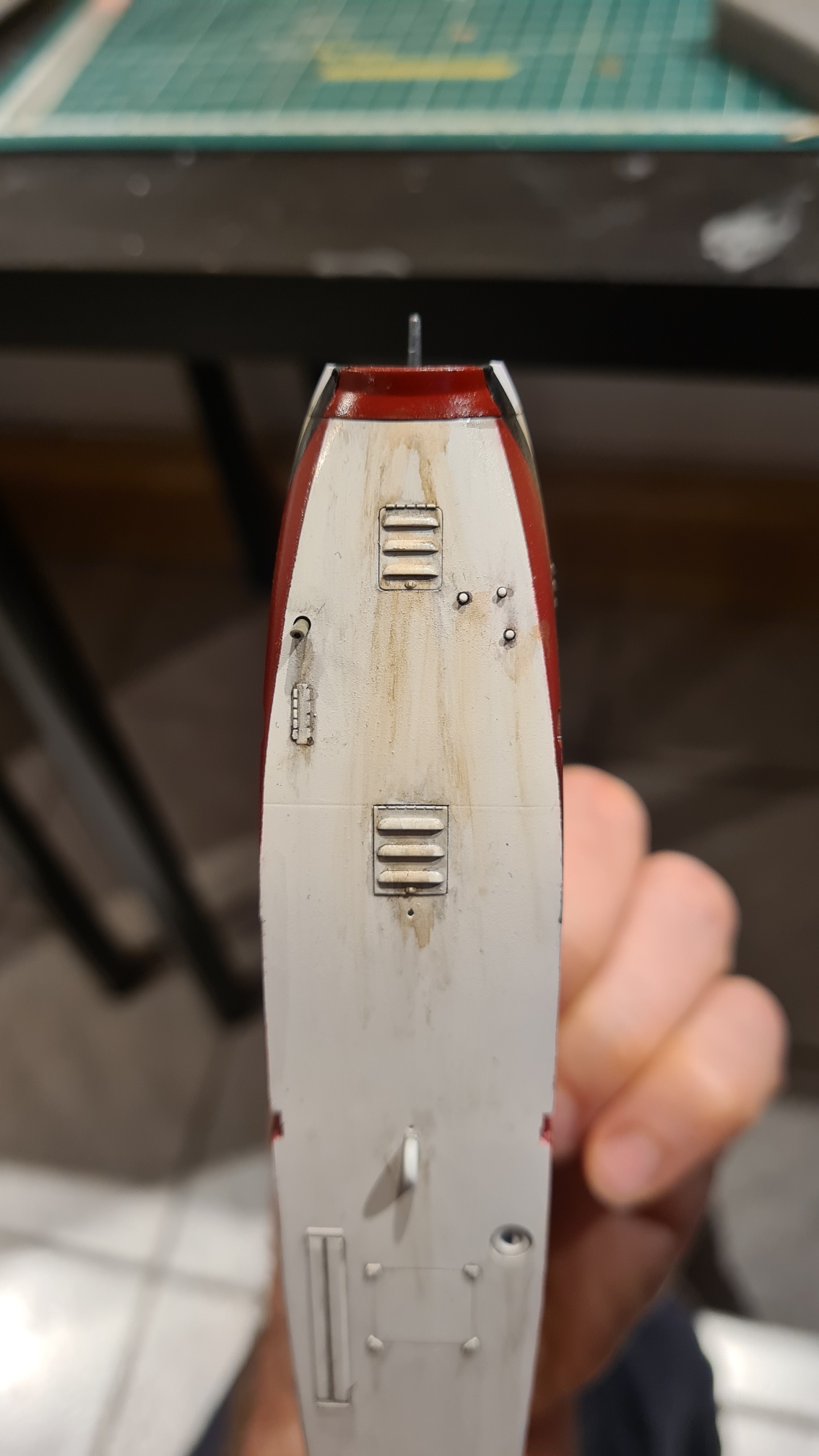 Die Oberseiten sollen allerdings glänzend bleiben, darum wurde später nochmal Glanlzlack drüber gesprüht (Tamiya TS 13). Damit der Glanz nicht zu stark ist, wurden ein paar Pigmente verrieben, halten auch so ganz gut, hab es erstmal ohne Fixierer gelassen.