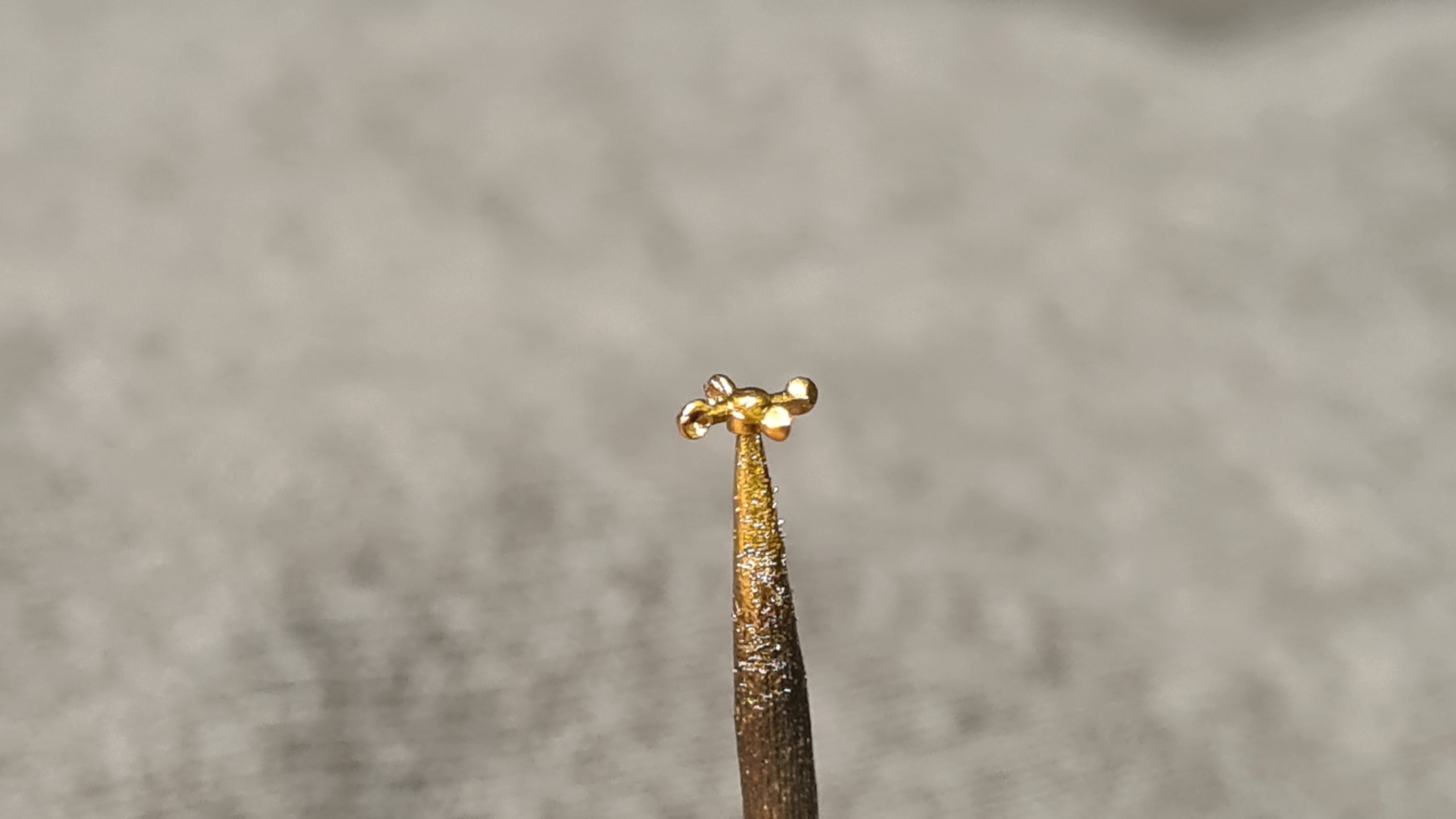 Die einzelnen Löffel wurden kurz mittig miz 0.3 angebohrt und dann mit einem größeren Bohrer (ich glaube 0.8) auf- und rundgebohrt: