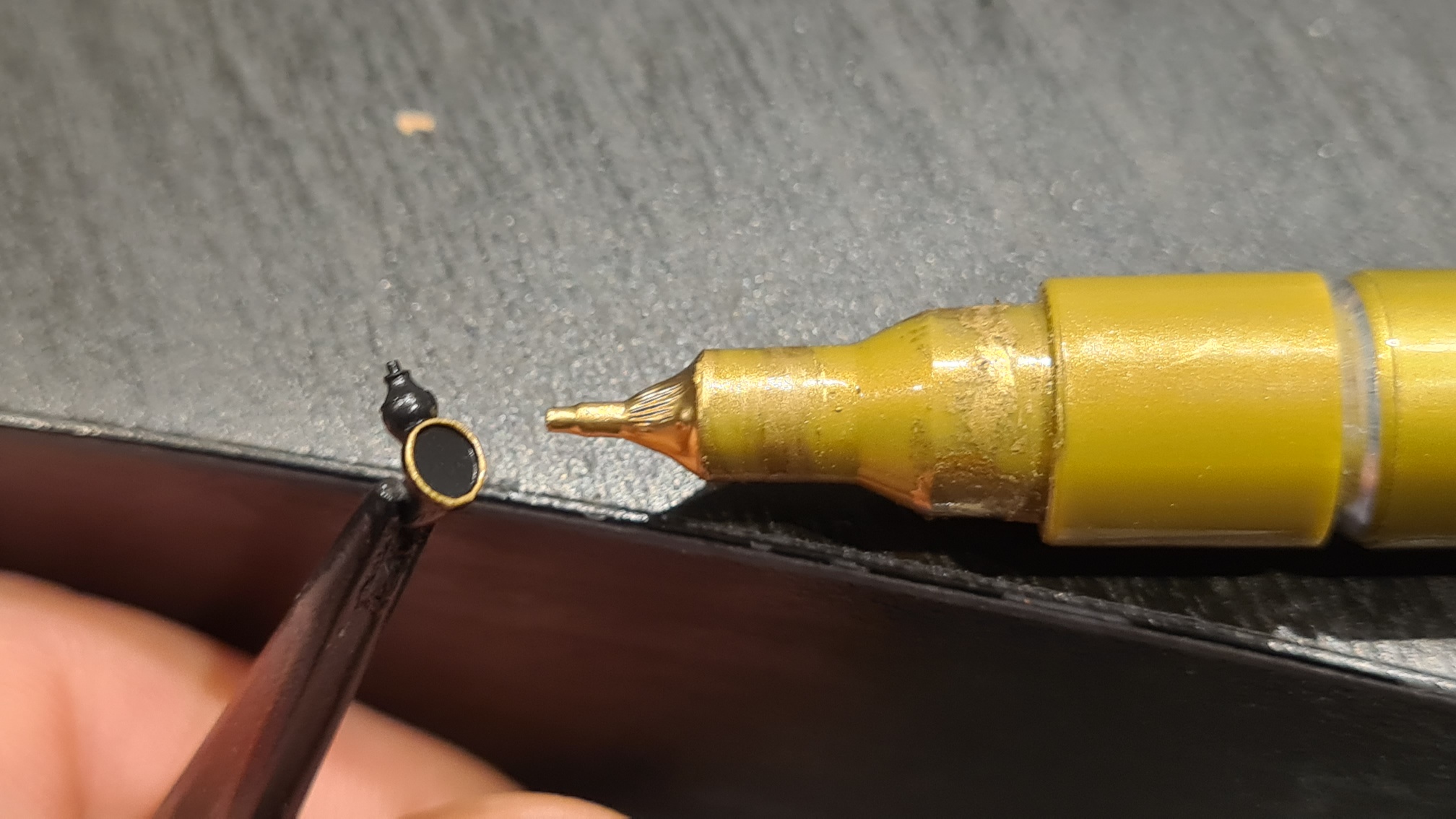 Alclad 2 Microfiller drauf und dann Alclad 2 poliertes Messing: