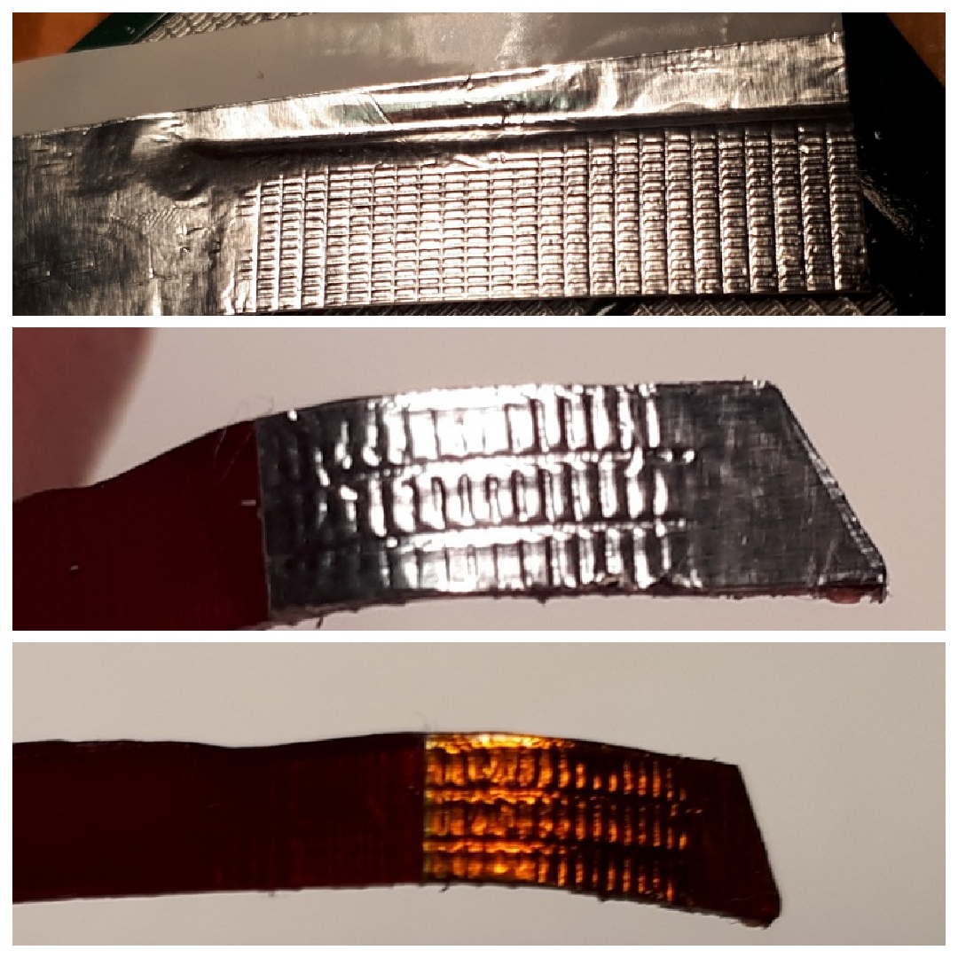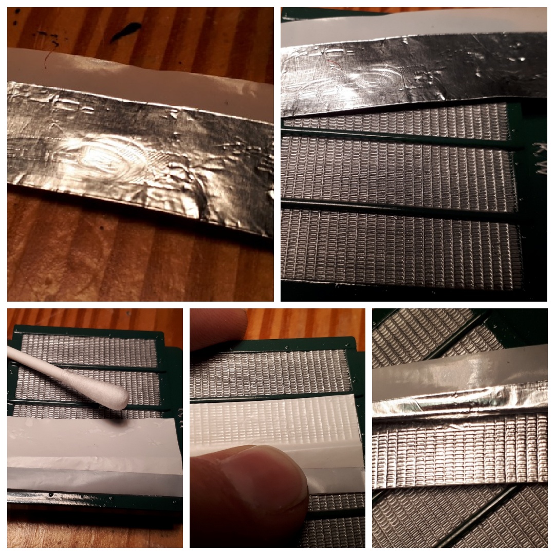 Um die "Prismen" deutlicher zu machen, klebe ich eine Silberfolie dahinter und reibe sie mit Q-Tips fest auf die Struktur: