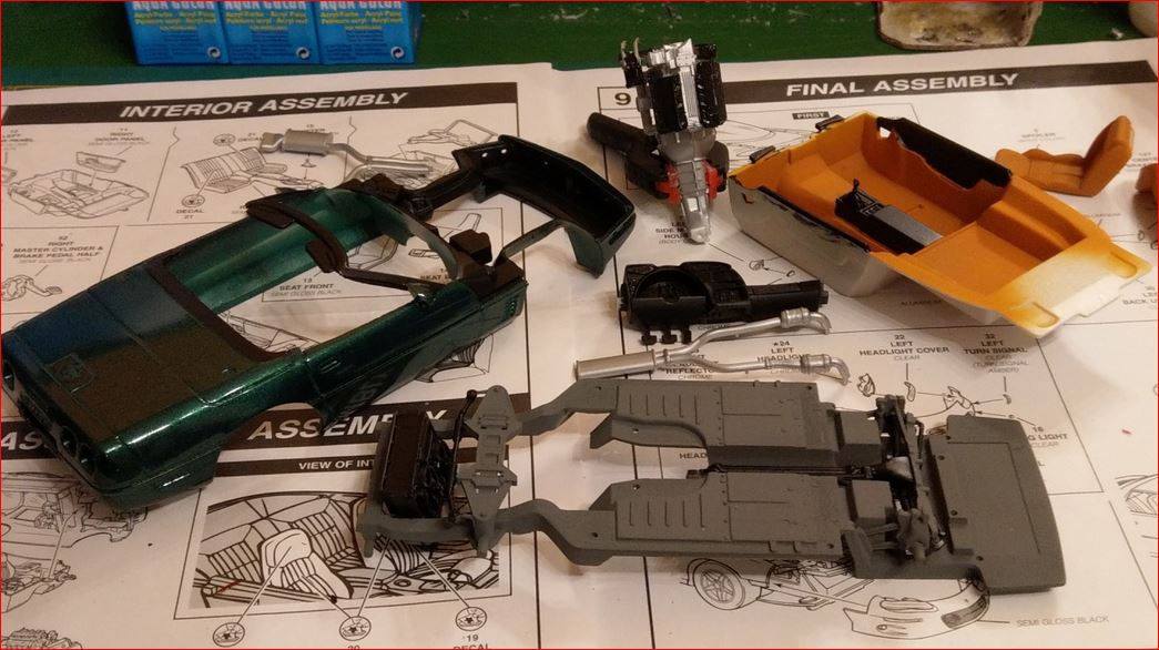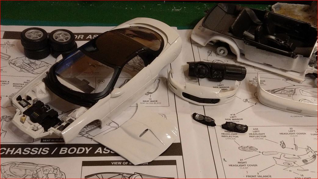 Dann baue ich eine 1996er Corvette. Diesmal nicht silbermetallic, da diese Variante (bis auf die "alte" Form der vorderen Stoßstange) schon im Regal steht. Und sollte ich diese letzte Entwicklungsstufe der C4 doch silber haben wolle, so schnappe ich mir die aus dem Lager. Soviel dazu: eine ehemalige Collectors Edition, die die Räder für den Camaro spendet. Die Collectors Edition war werksseitig silbermetallic :lol: