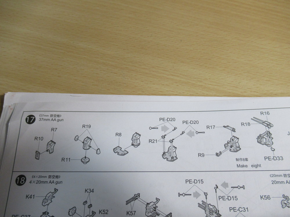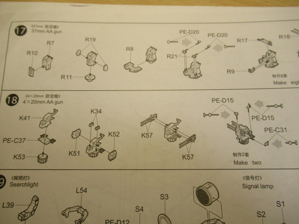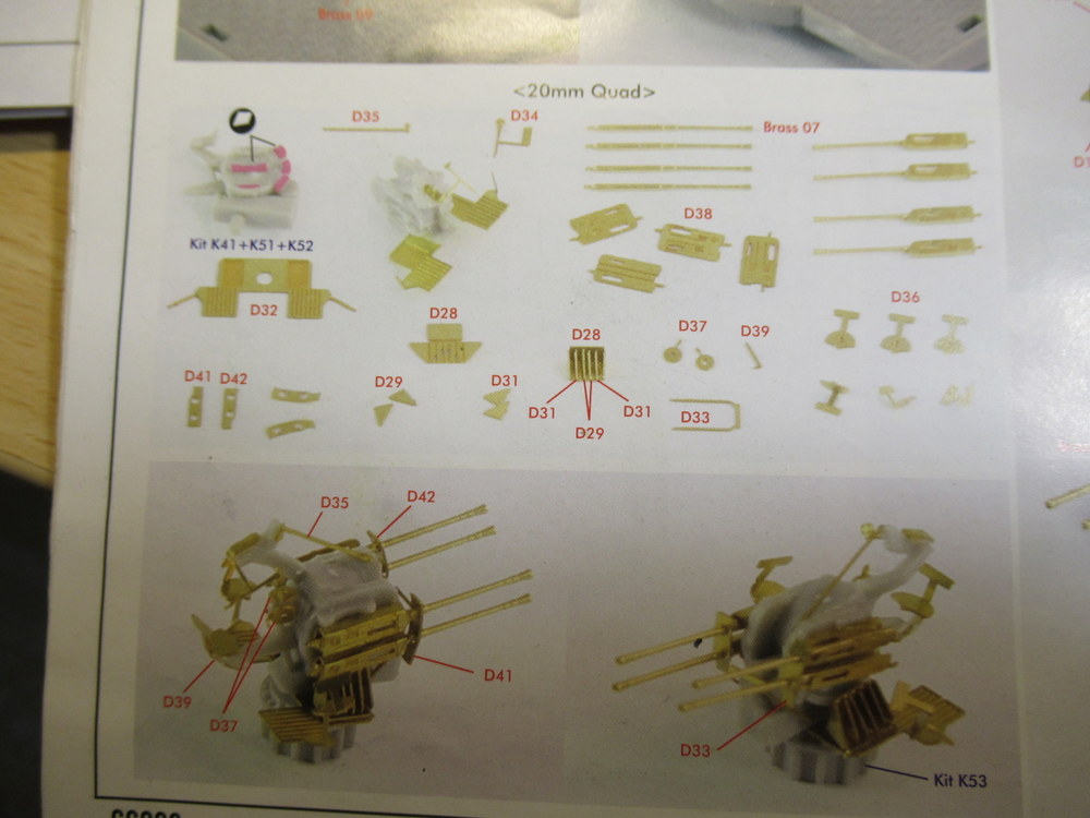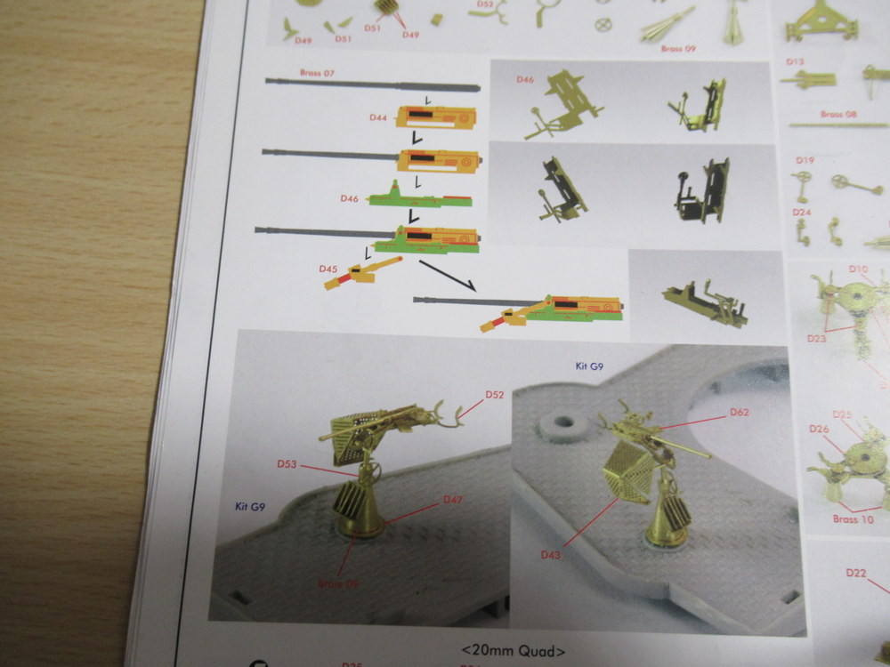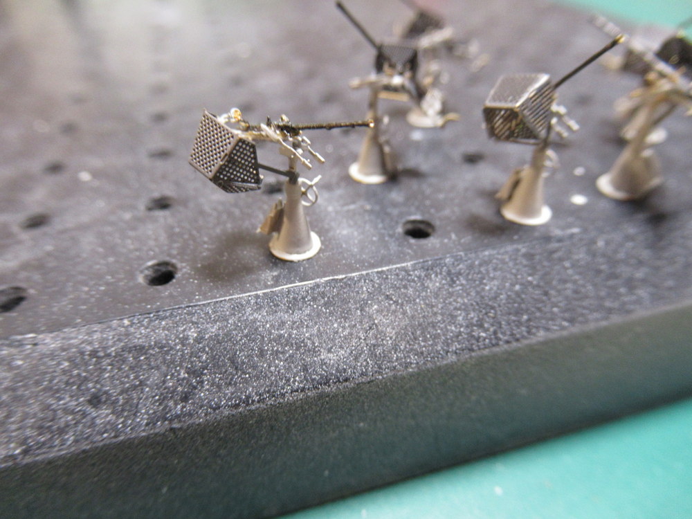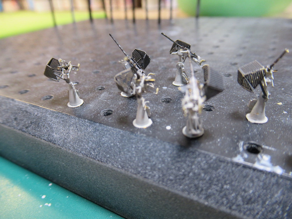 hi, ich hab mich ja endschieden jetzt erst mal die ganzen Geschütze zu bauen . Hier waren dann die 20 mm Single daran. Das sind schwere MG´s auf Lafette . Im Bausatz liegen zwar welche bei , die aber kaum definibar sind . Pontos hat hingegen ansehnliche Mg´s als Ätzteilbausatz . Diese bestehen rein aus Ätzteilen . Hier müssen dann 15 relativ kleine Pe Teile zu einem Geschütz zusammen gebaut werden .