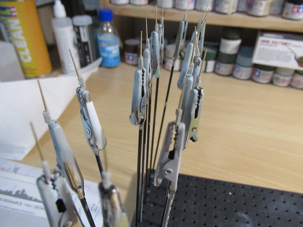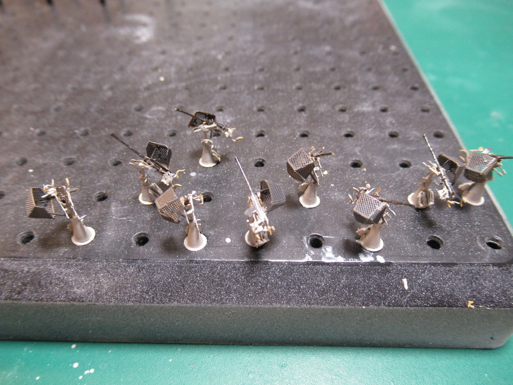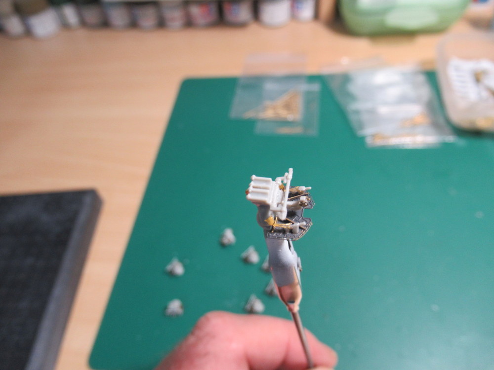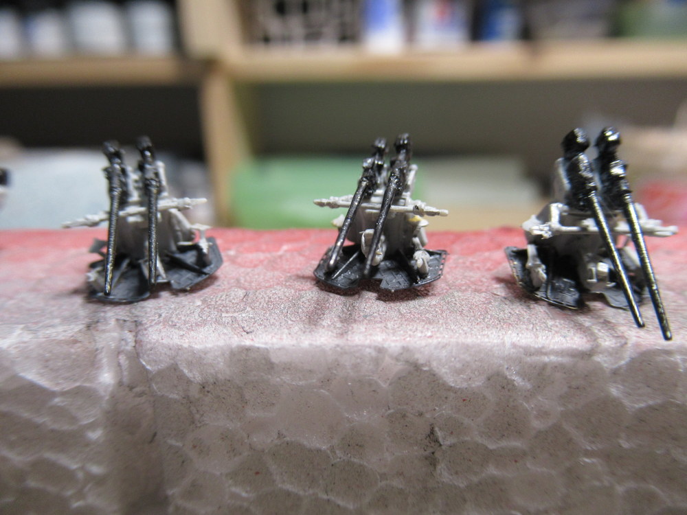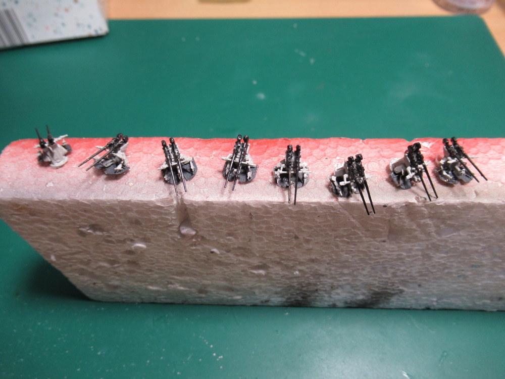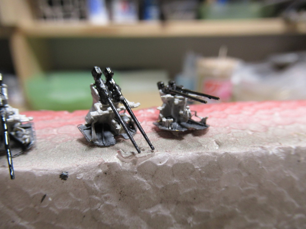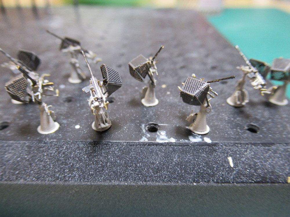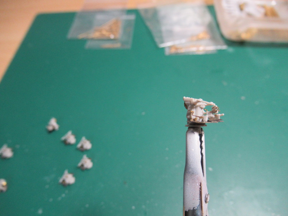 So ..ich hab mich um die 8 37mm Geschütze gekümmert. Das Grundgestell war recht einfach zu händeln . Die Geschützrohre in bzw an die mini Plastikteile zu bekommen war die größte Herrausvorderung. Kann gar nicht sagen wie oft mir die wieder abgeflutscht sind .