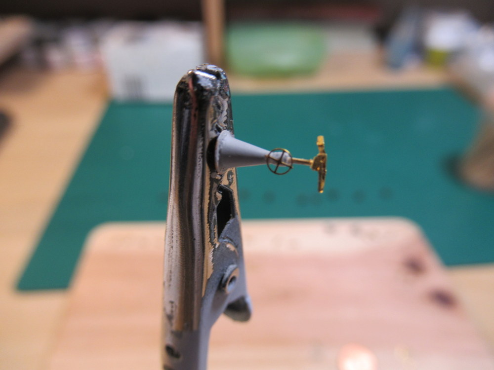 Der Aufbau worauf dann das MG aufgesetzt wird , inkl. der beweglichen Aufnahme und Einstellrad . Diese werden dann in Mittelgrau DKM 51 von Lifecolor bemalt .