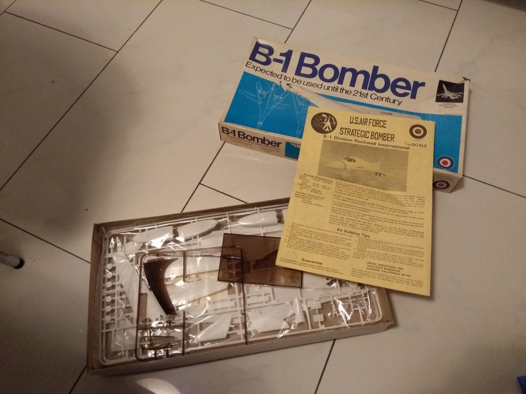 Wie alt dieser Bausatz ist lässt sich an der Beschriftung ja erkennen, die tatsächliche Inbetriebnahme war da noch weit entfernt … das Ding wird meine Frau sich selbst bauen , sie steht total auf die B1 , aber die riesige Variante in 1:48 kommt uns nicht ins Haus. Und wir lieben diese alten Bausätze.