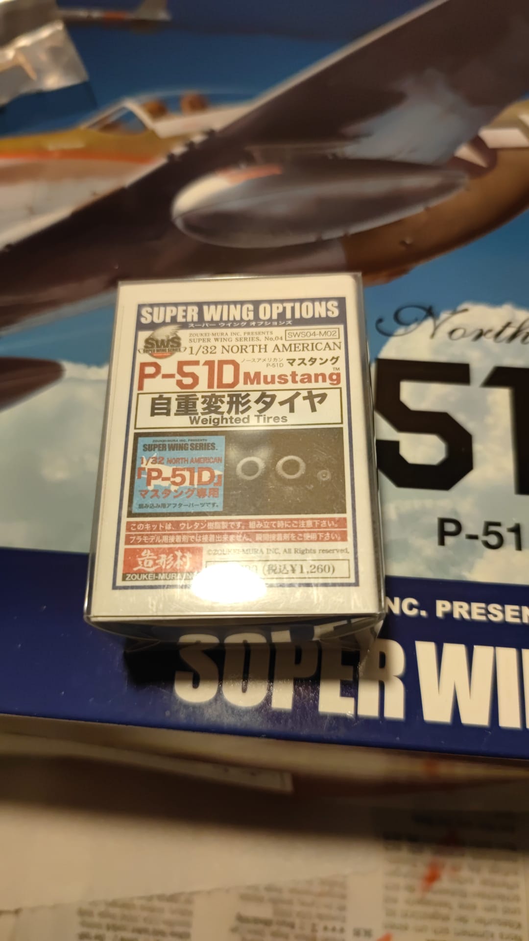 Die Zourei- Mura P51d in 1:32 ist gekommen, dazu das Metallfahrgestell, die PE Teile für Cockpit, Motor und Außen und last but not least die Reifen.