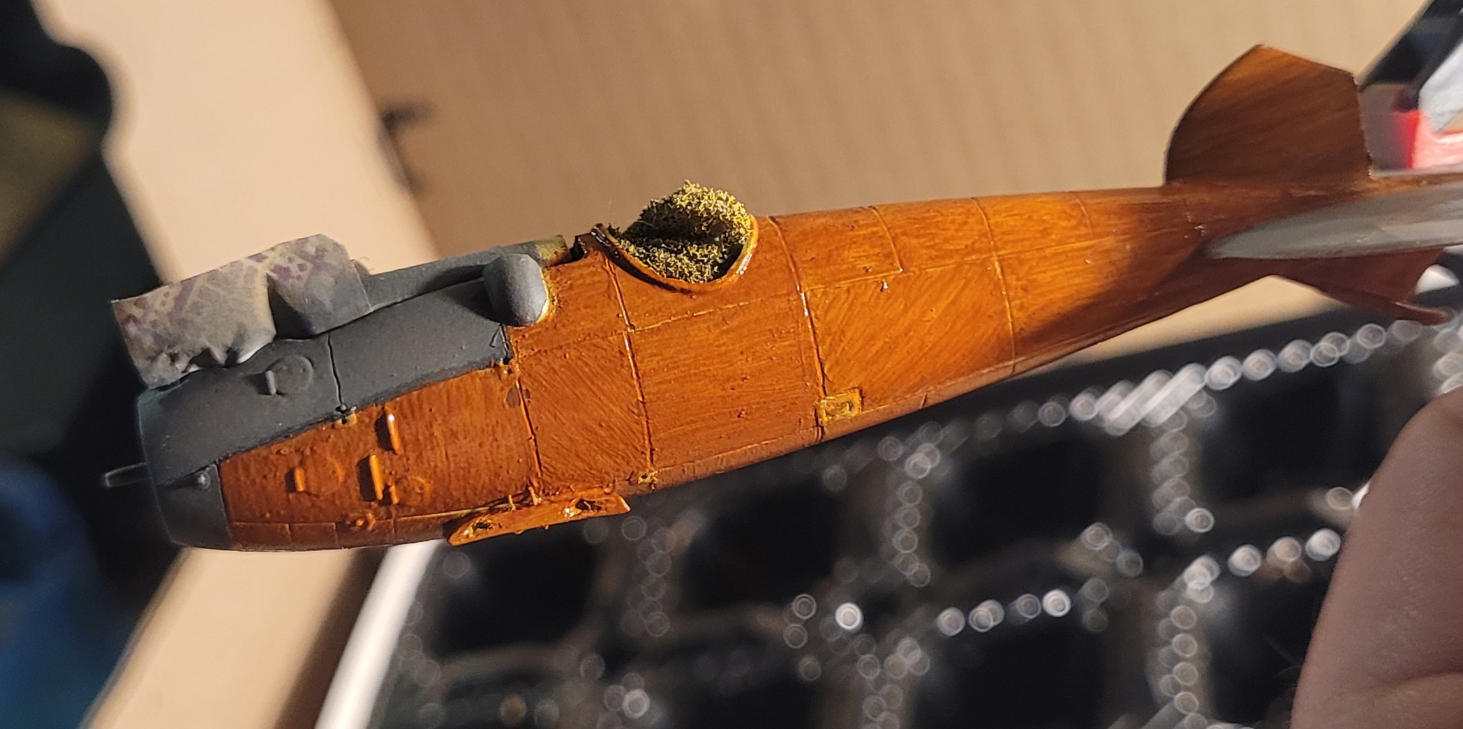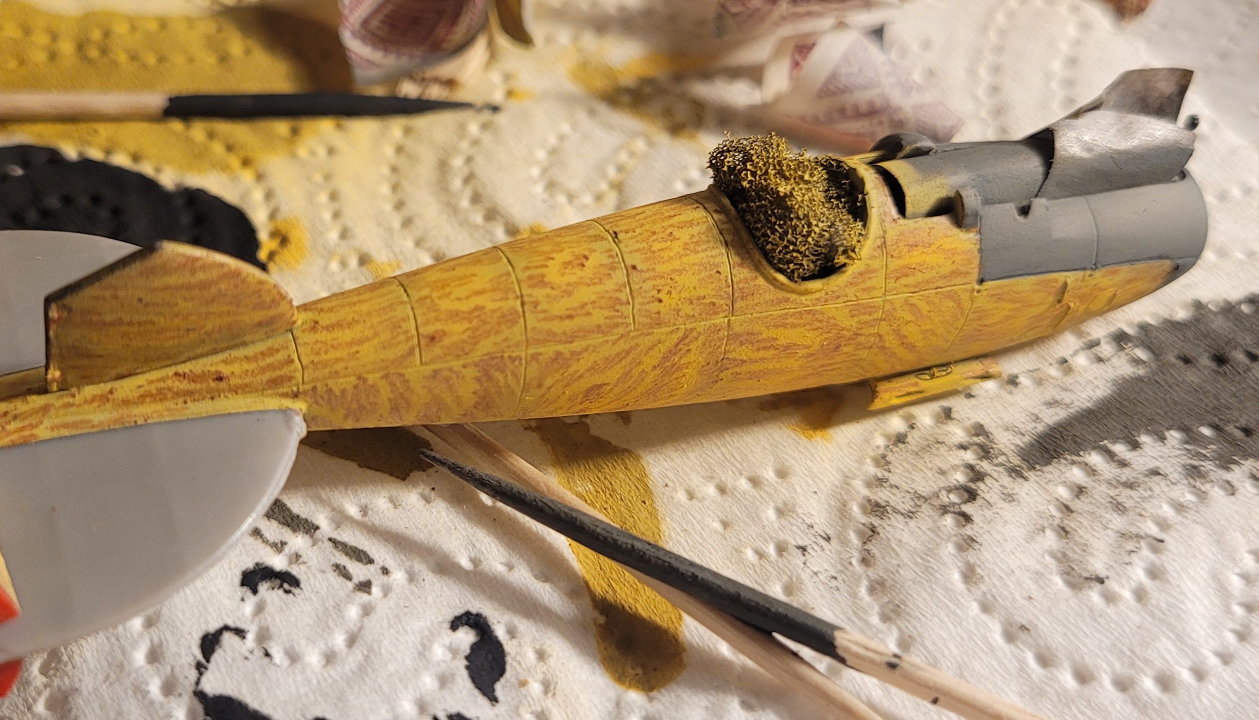 Da der Rumpf jetzt so weit fertig war, gab es die erste kleine Farbdusche inklusive eines tatsächlich dezenten Pre-Shadings.