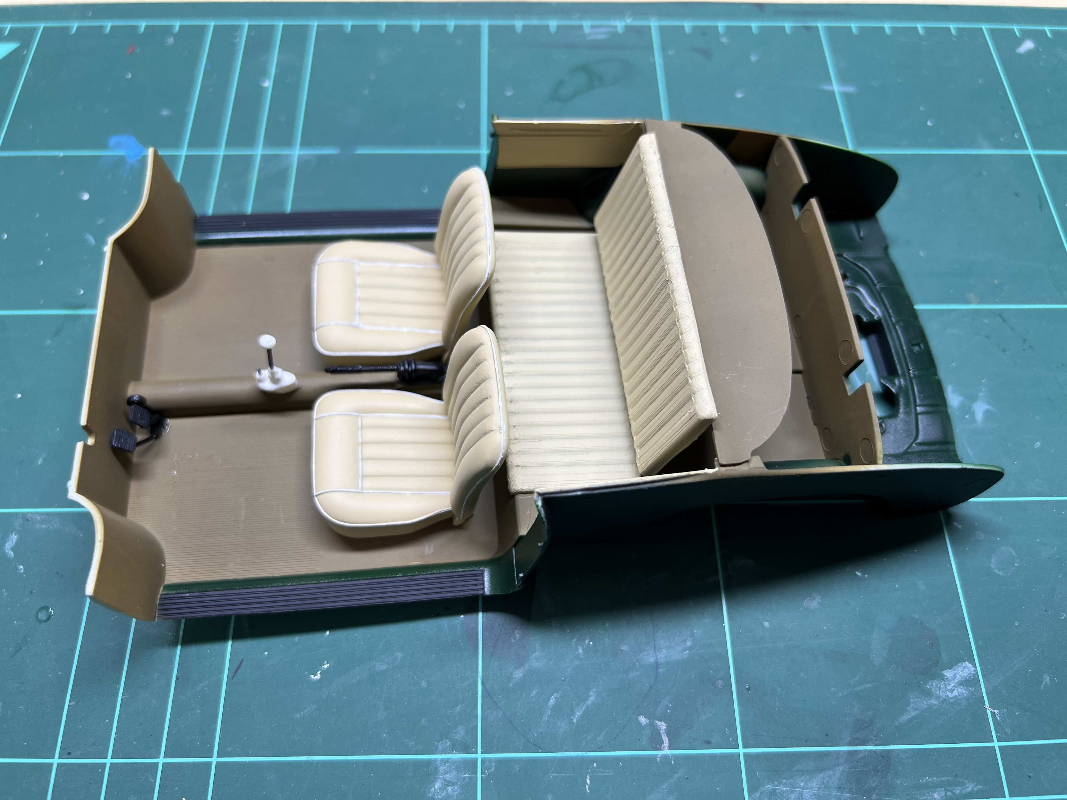 beim betrachten der Fotos habe ich festgestellt, dass ich auf der Rücksitzbank auch noch eine weiße Naht anbringen könnte.