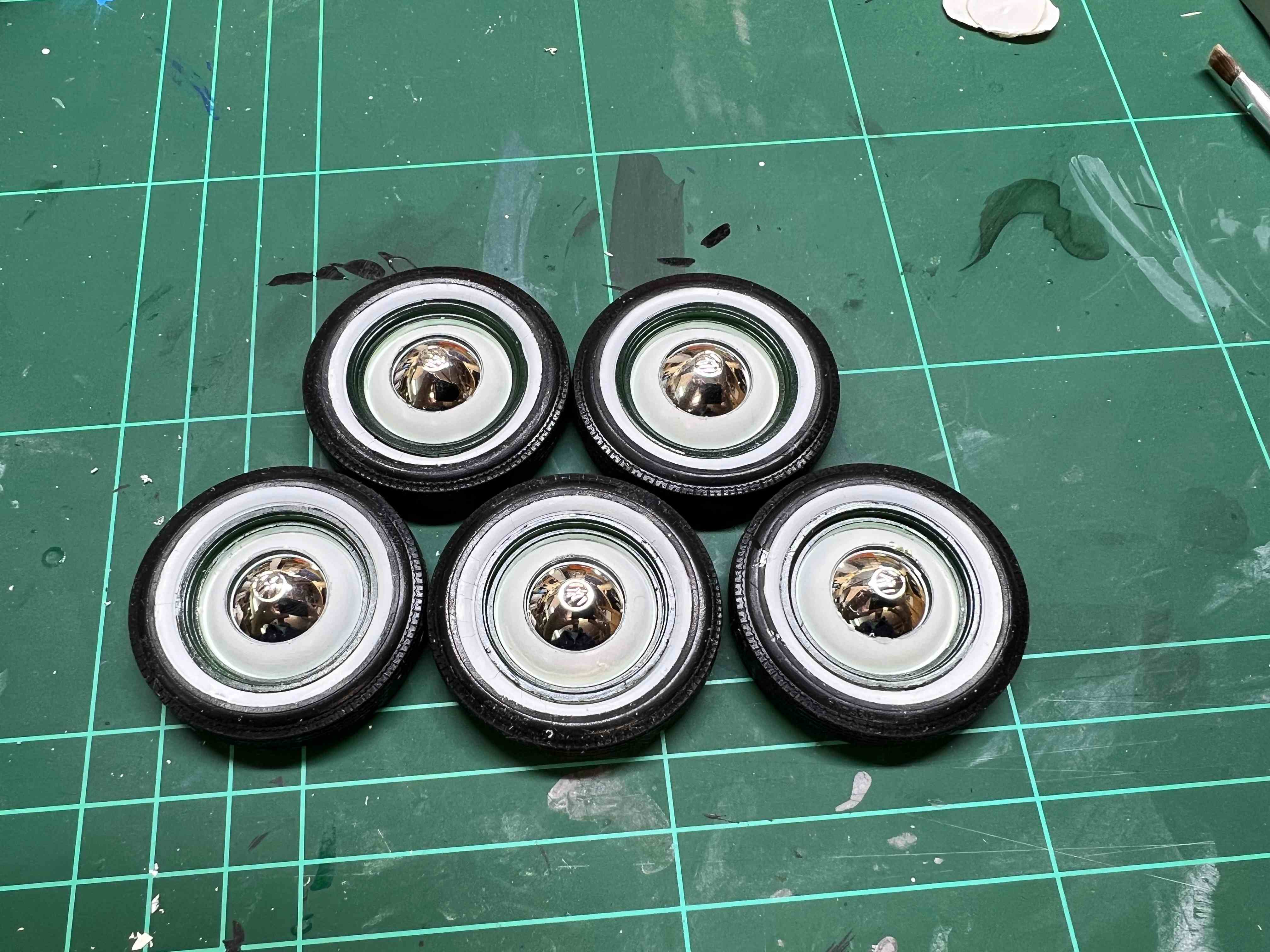 Fertig sind die fünf Räder für den Karmann Ghia und ich denke ich bin ziemlich dicht ans Original rangekommen.
