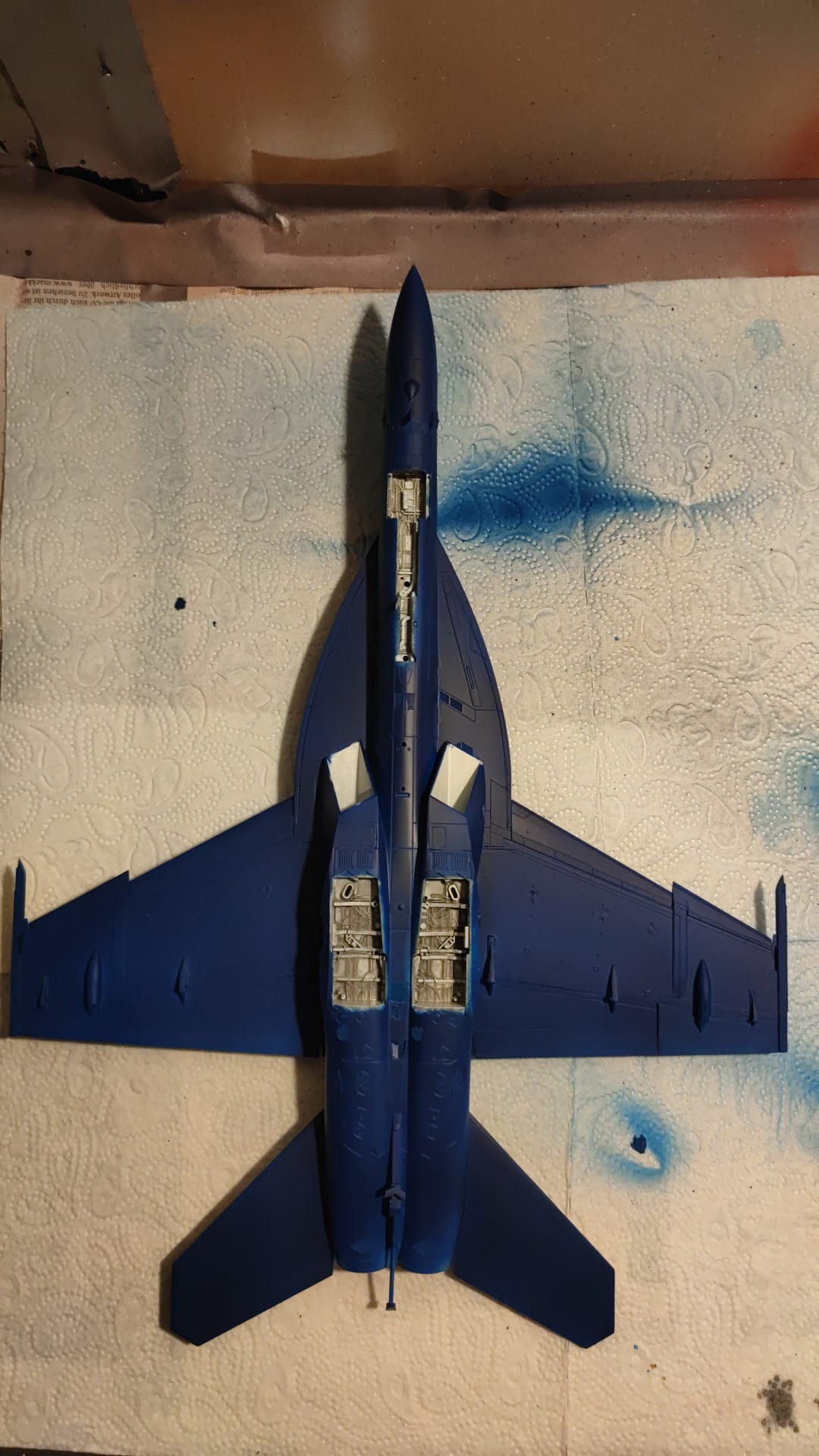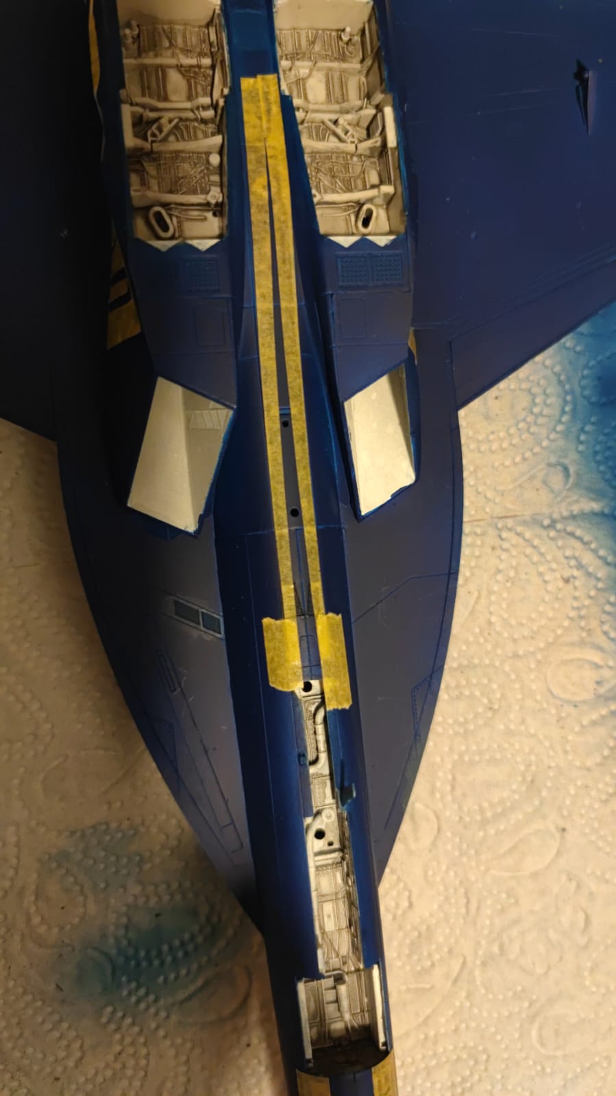 Heute zum ersten Mal wieder mit airbrush gearbeitet. Die Unterseite ist nun auch blau. Einige Stellen müssen noch mal nachgearbeitet werden, aber sonst bin ich ganz zufrieden. Ich fenke, ich werde jetzt erst mal die blaue zu Ende machen, um mich nicht noch mehr zu verheddern. Gesund zwei Modelle gleichzeitig zu bauen ist schon anstrengend..... mit Handicap ist noch schwerer und ich musste schon einiges doppelt und dreifach machen..... ätzend