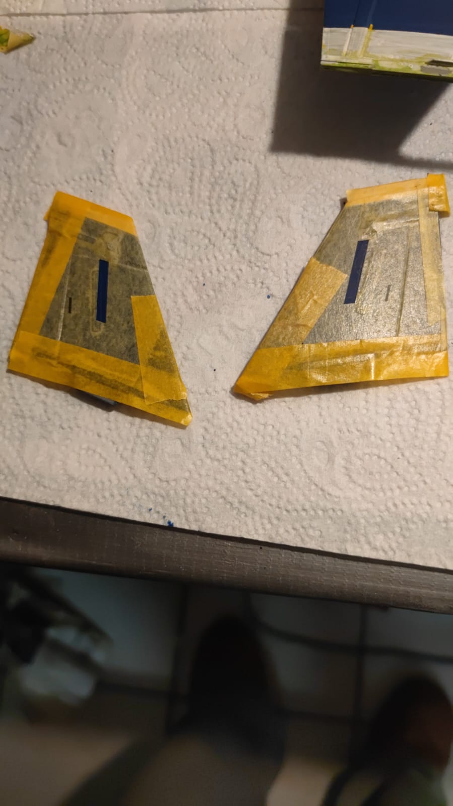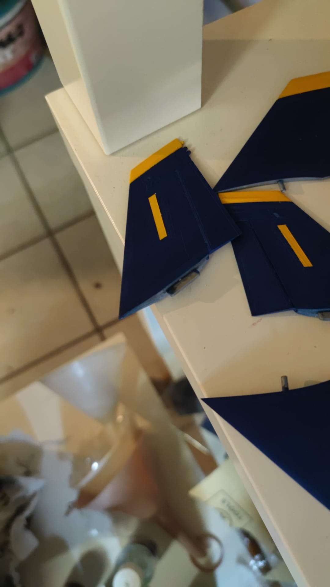 Die blauen Streifen sind komplett selbst lackiert. Von den Decals habe ich nur die Schriftzüge und das Logo auf den leitwerken verwendet.