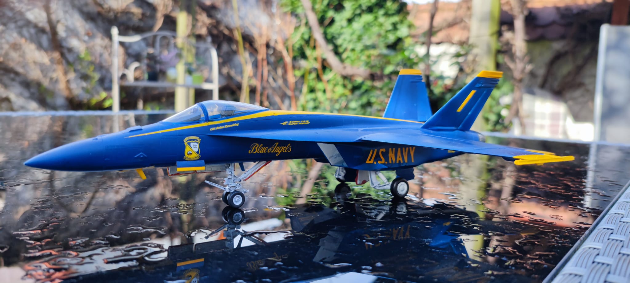 Hallo zusammen, nach fast einem Jahr bin ich wieder einigermaßen wieder hergestellt und kann mich wieder vernünftig dem Modellbau widmen. Ich bin euch noch die Bilder der fertigen Blue Angels Maschine schuldig.