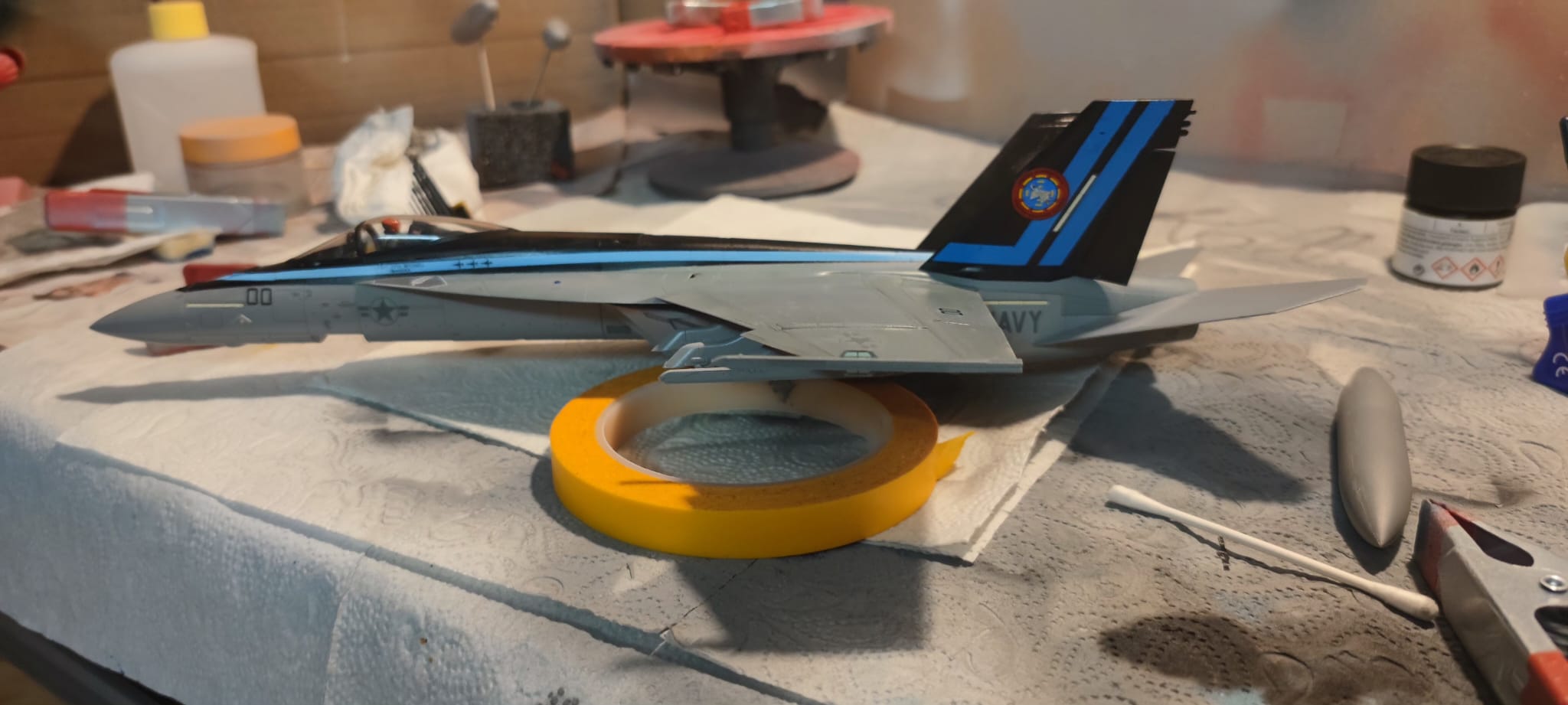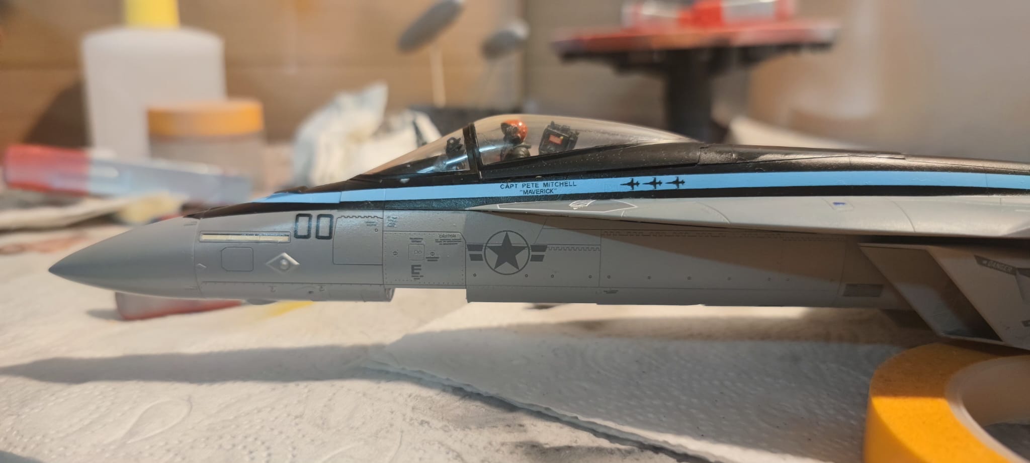 Die Maverick Maschine ist ebenfalls auf der Zielgeraden. Die Decals sind drauf und der Klarlack. Danach gehts es dann an das Zusammenbauen von Fahrwerk, etc....