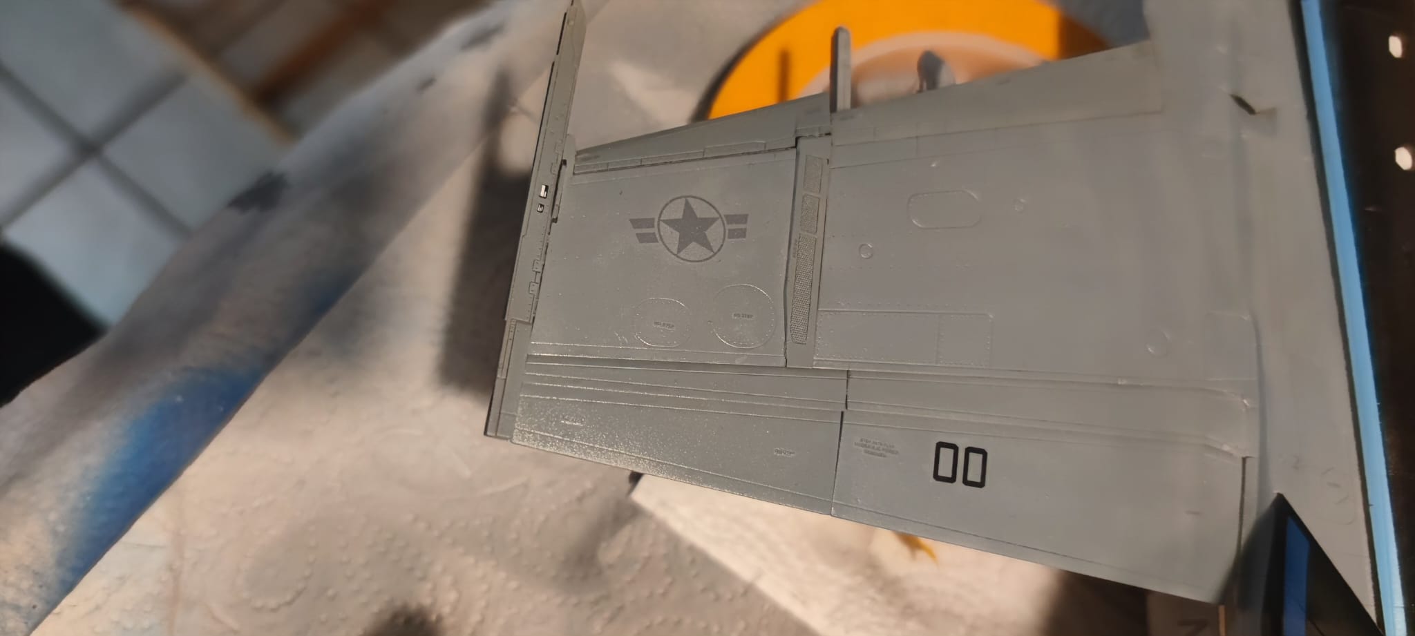 Endlich wieder ein paar Fortschritte. Die wichtigsten Lackarbeiten sind gemacht. Es fehlt nur noch die Lackierung unter den Flügeln, dann gibbet Klarlackdusche fur die decals...