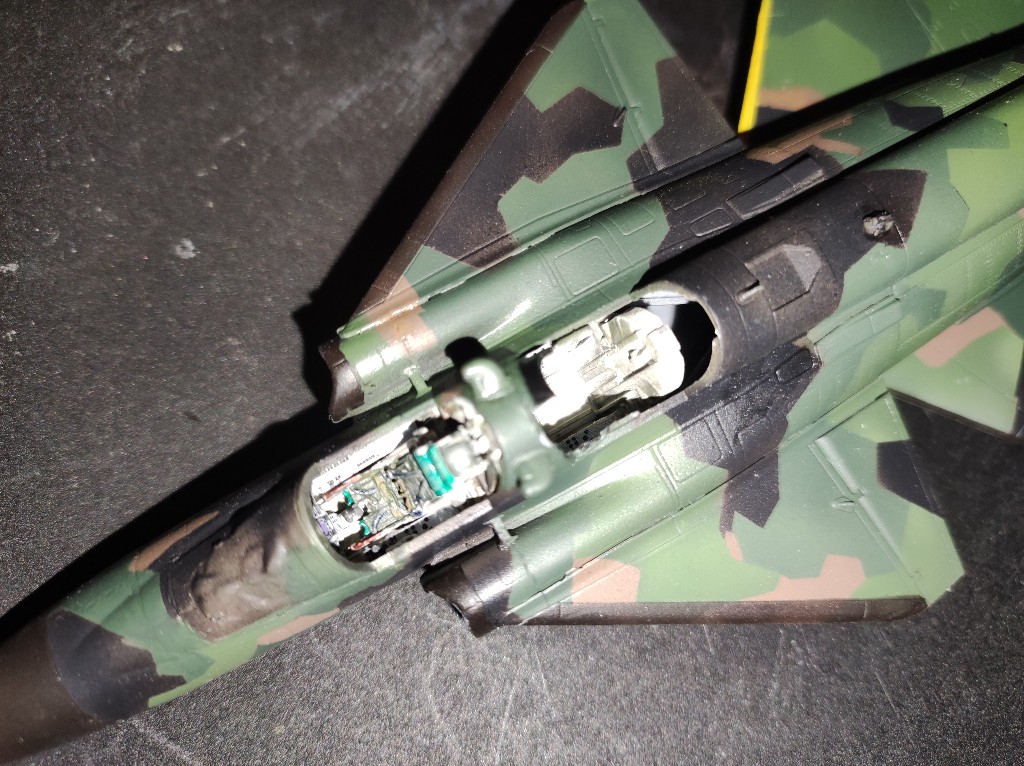 Ein erster Versuch das ganze mit Pinzette wieder hochzuheben scheiterte. Auch von der Nase her mit etwas dünnen Ran zukommen, war aussichtslos und ich befürchte schon das ich wirklich den kompletten Rumpf auseinander nehmen muss oder das Ding in der Tonne landet