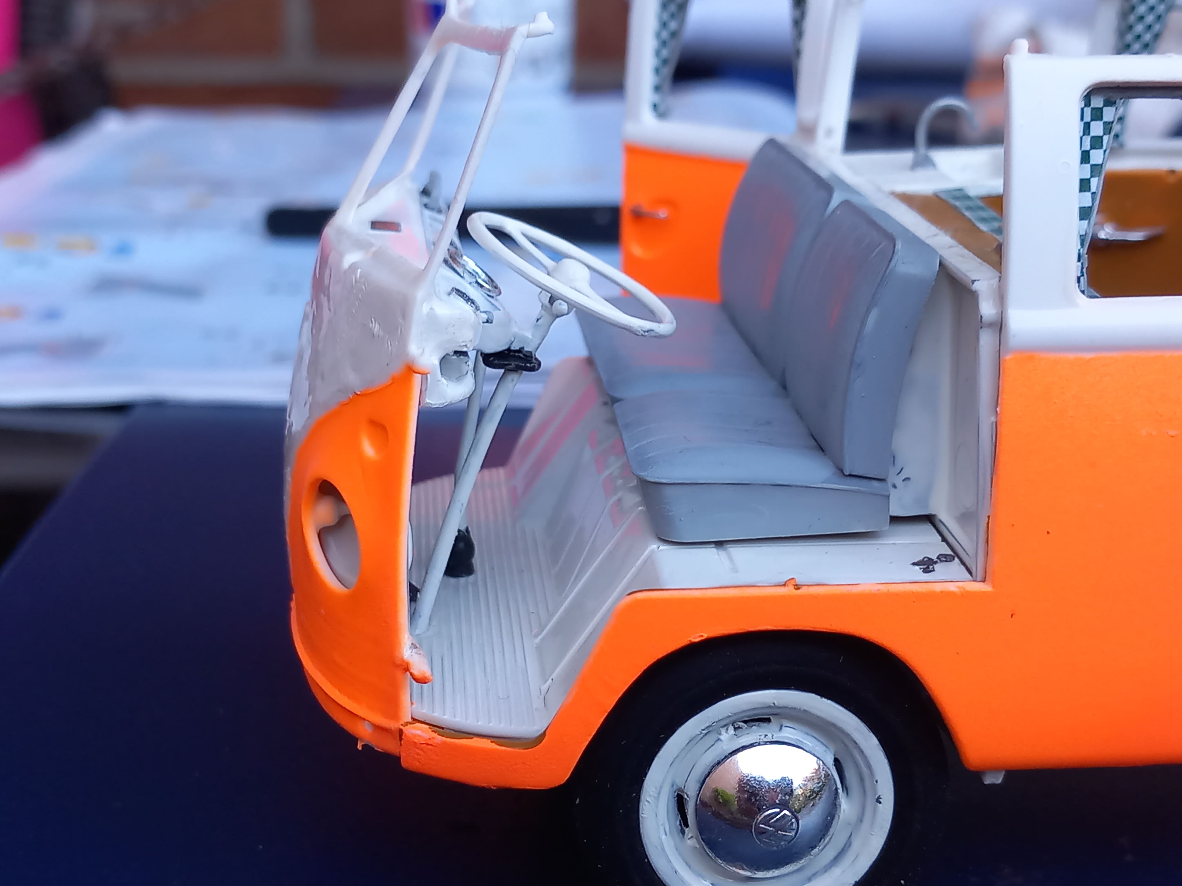 Jep, die Scharniere sind sehr tricky. Bei meinem Bully habe ich gefühlt einen Tag verbracht, um die vor der Lackierung anzupassen. Dazu bohrte ich die Löcher maximal auf und die Pins ersetzte ich dann notgedrungen mit Draht. An den Innenseiten der Türen und an den nicht sichtbaren Scharnieren an den A-Säulen dünnte ich auch alles aus.
