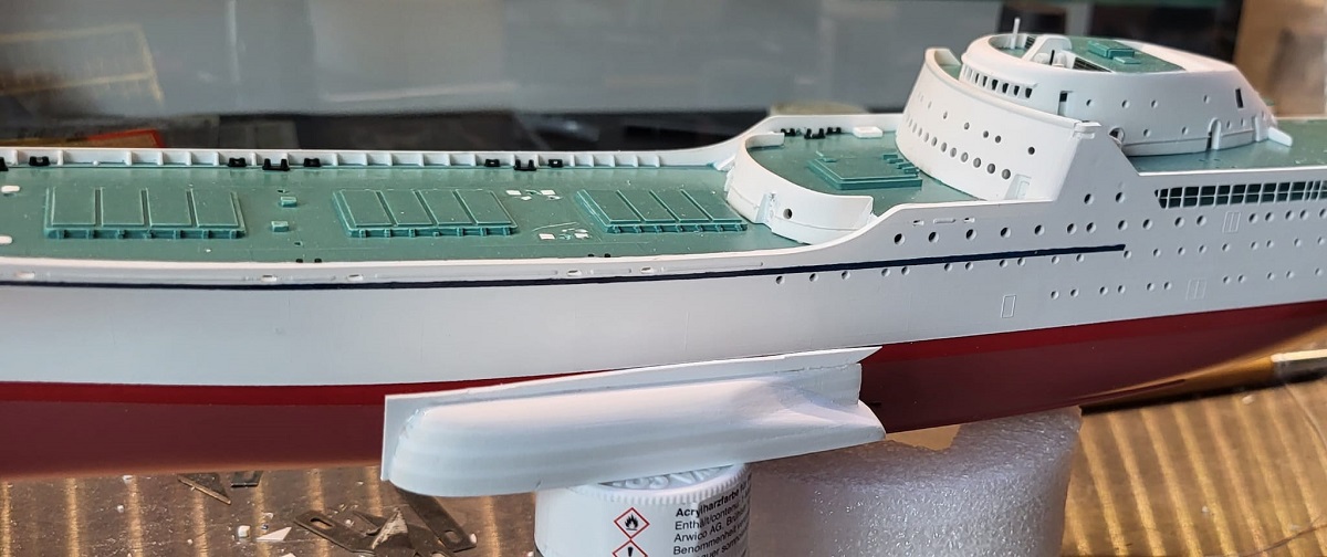 beim mahlen der blaue linie merkte ich dass vorne einer grosse öffenung in der kit totaal falsch ist... also dass muste zu