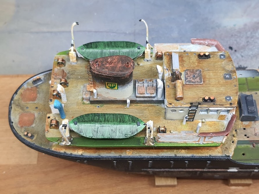 Das Hintere Deck bekam noch einige Rollen und Lüfter. Das Tank Deck wurde um die Domdeckel auf den Tanks ergänzt