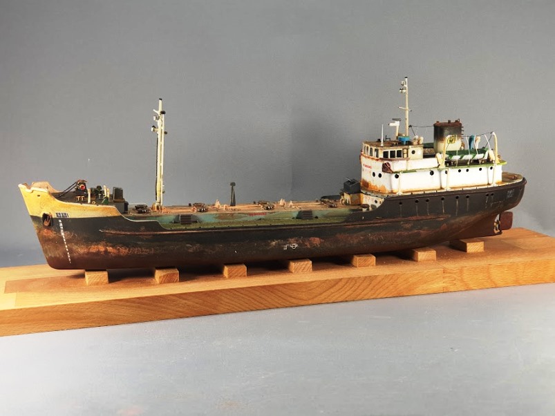 Beim Aussuchen der Fotos, für den Beitrag, fällt mir auf, dass ich die „Plimsoll Marke“ zu tief angebracht habe. Das ist die Marke, die die Beladegrenze für das Schiff markiert. Leider kann ich das nicht mehr ändern da ich den Rumpf bereits mit Klarlack versiegelt habe.