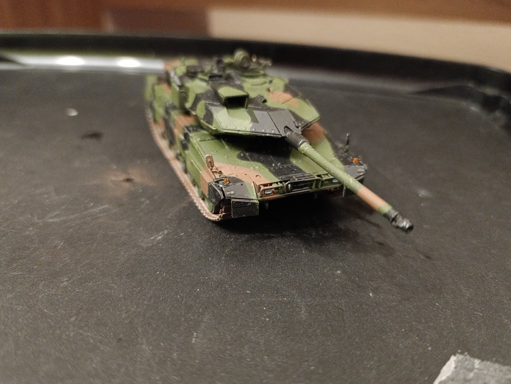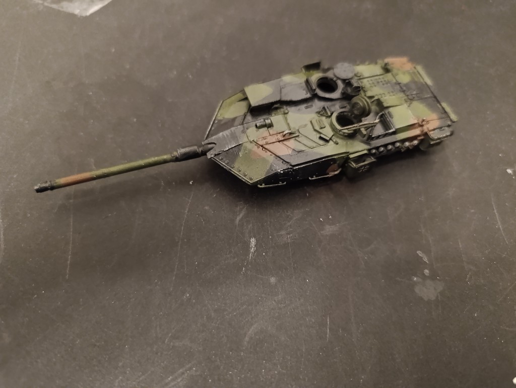 Der Leopard ist samt seiner Vingette in den letzten Zügen. Zunächst durften Abziehbilder und Klarlack auf das Fahrzeug, dann ging es weiter mit dem Weathering. Dabei setzte ich für das PinWash auf Ammo of MiG Wash for dark Green Vehicles und fur das Trockenmalen Ammo of MiG Grau.