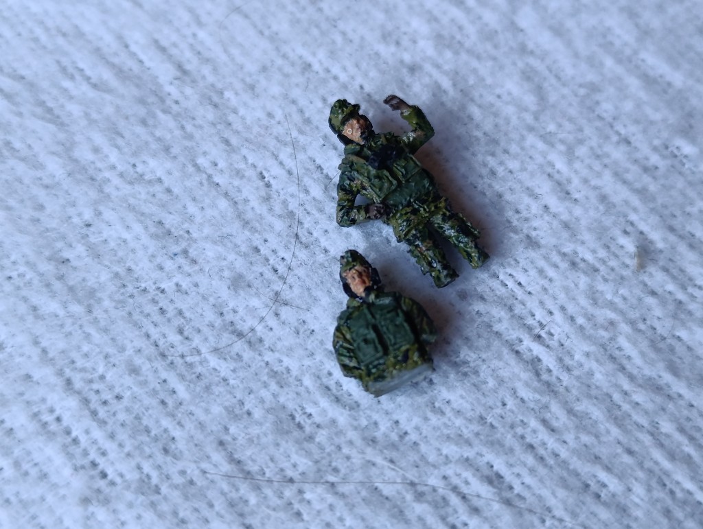 So heute kamen die beiden Herren der Besatzung an die Reihe. Natürlich ist die Tarnung nicht ganz ohne und irgendwie sieht man davon kaum noch etwas. Bei 1:35 wäre das sicher besser zu sehen.
