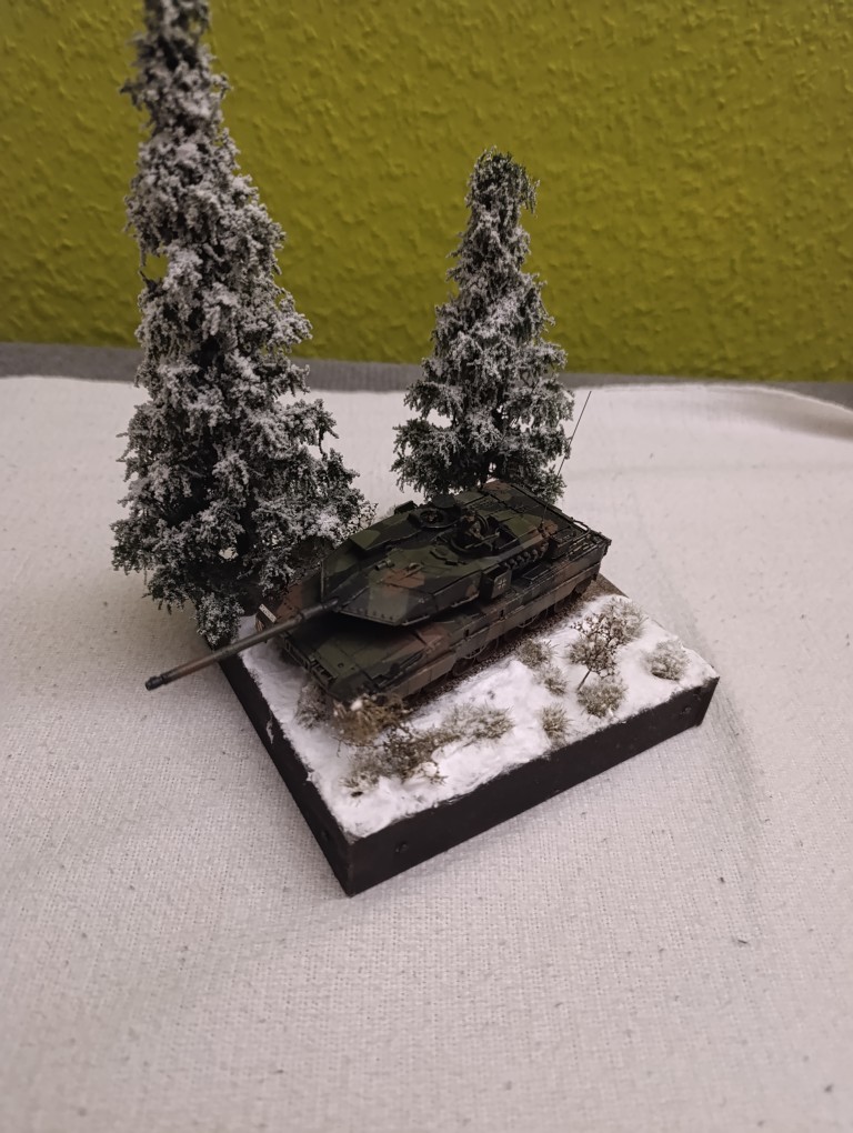 Zuletzt kam der Winter mit AK Acryl Snow und Schneepulver von Noch. Dann hatte der Leopard ein passendes Heim gefunden.