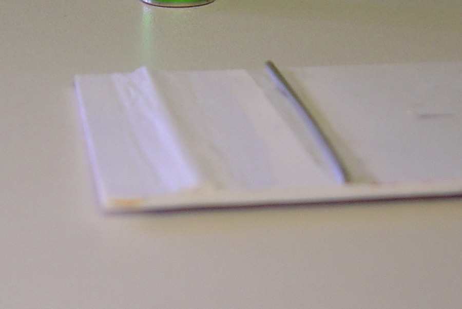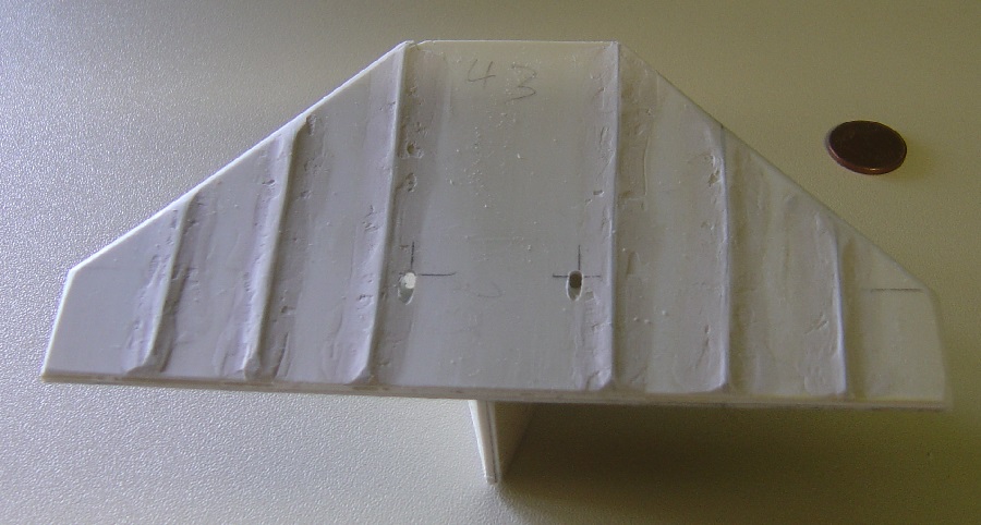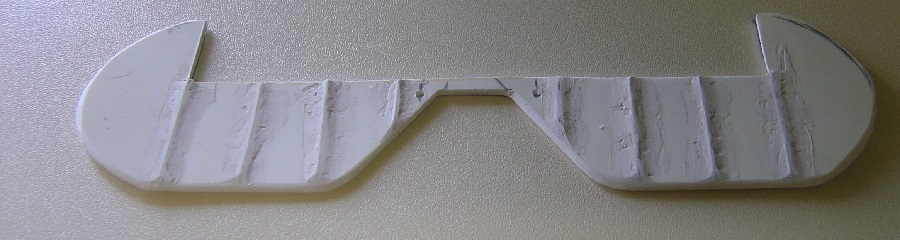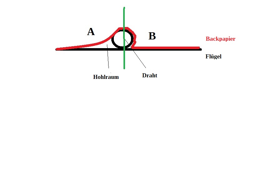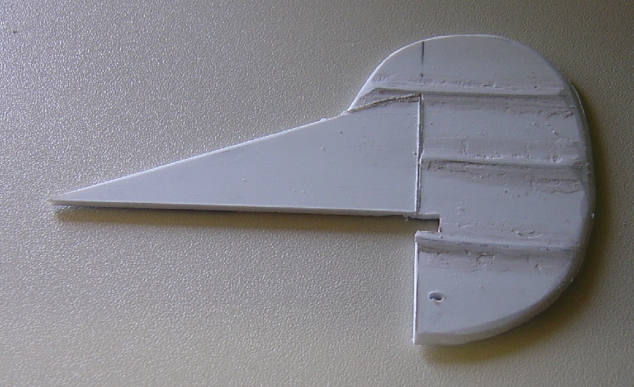 wenn man die Version A wählt, einen Hohlraum bekommt. Bei Version B es nicht richtig aussieht. Dazu kommt man kann Plast fester mit Plast verkleben als Metall auf Plaste. Außerdem ist das Feilen ( der Vorder- und Hinterkante der Flügel ) leichter wenn es alles ein Material ist. Ein anderer Gedanke war, wie im Original, einen Rahmen zu bauen und mit Selbstklebender Alufolie zu bekleben. War mir aber zu aufwendig.