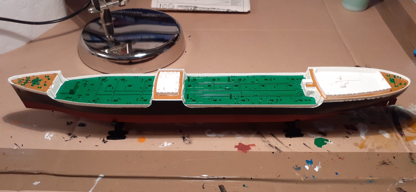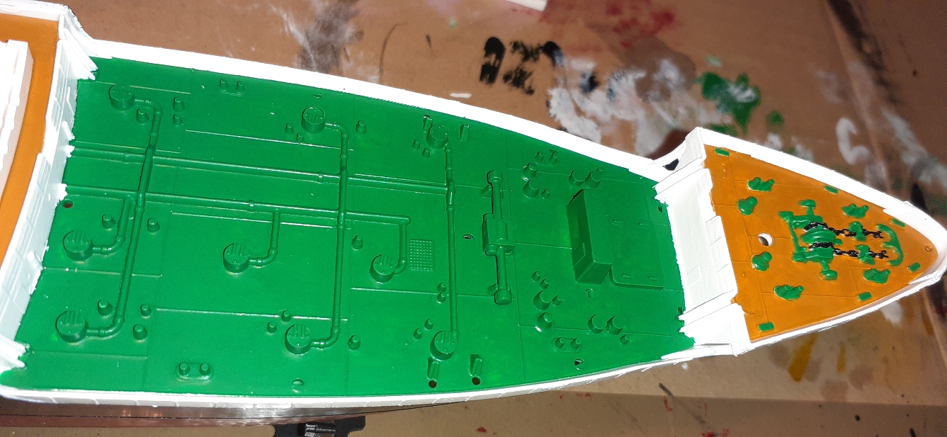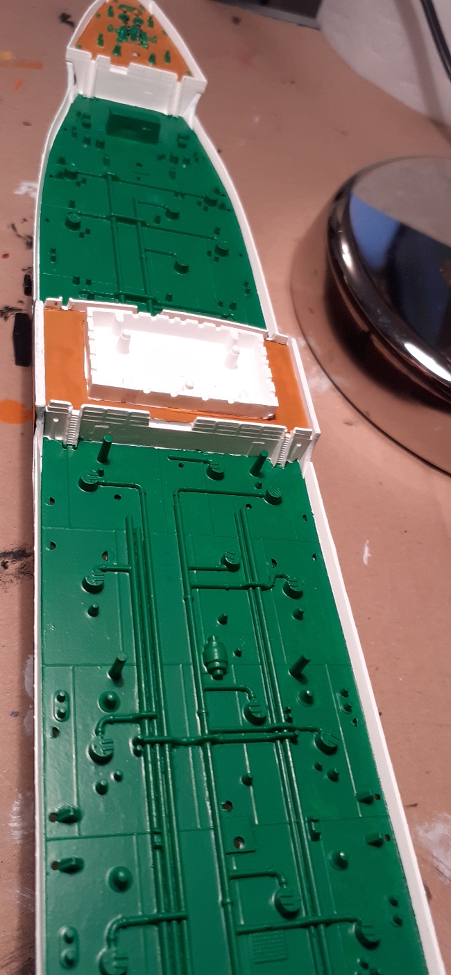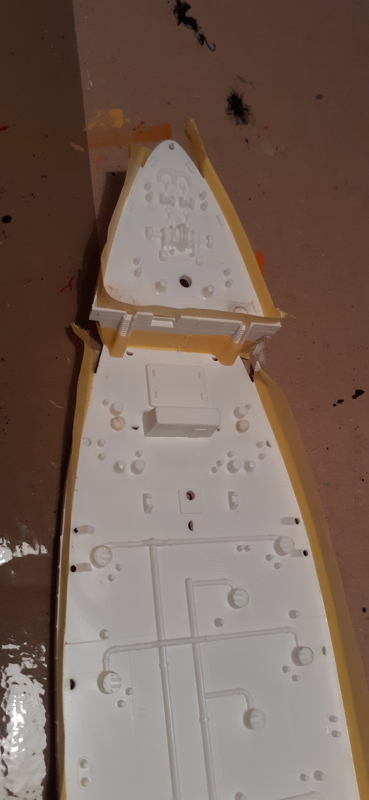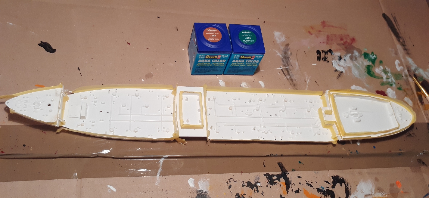 Als nächstes steht die Lackierung des hauptdecks an...abgeklebt ist schon alles