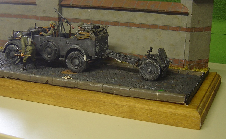 Dann habe ich mir noch Gedanken zum Einsatz- Zeitraum des Modelles gemacht. Die meisten Infanterie-Regimenter ( wo das IG eingesetzt waren ) waren ja zu Fuß unterwegs. Hier wurden die IG`s Pferdegezogen. Ein bekanntes Infanterie-Regiment war das Infanterie-Regiment „Großdeutschland“