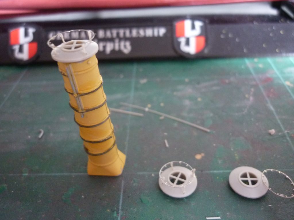 bei mir hat es auch ein paar Baufortschritte gegeben.Zuerst habe ich oberen Ringeisen die von der Tirpitz von Revell stammen