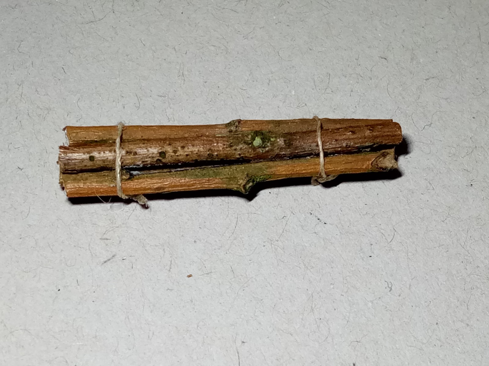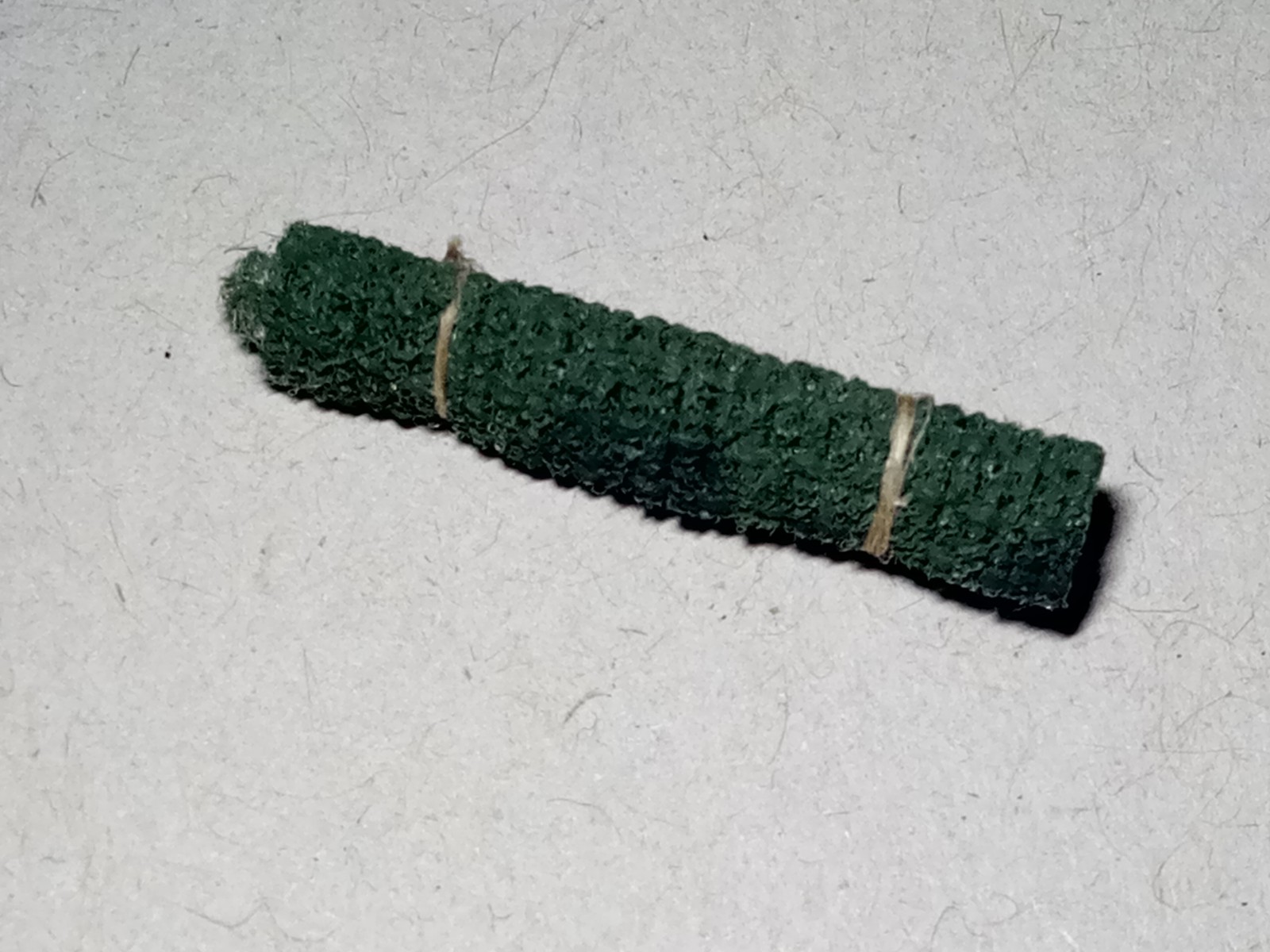 Ebenso ein Tarnnetzimmitat aus einer Mullbinde.