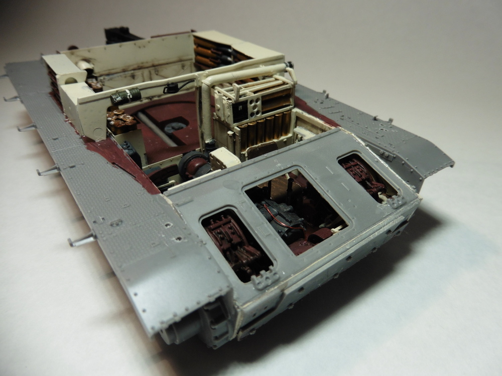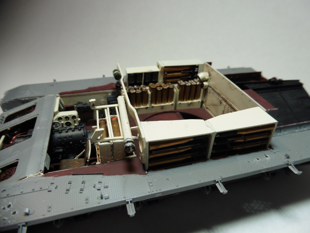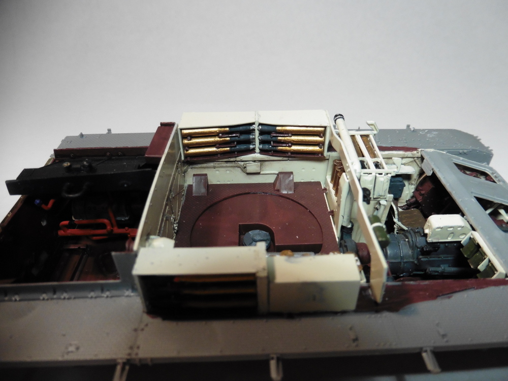 Die untere Wanne ist jetzt aber soweit fertig . Zusätzliche Munitionsbehälter wurden verbaut ... ist aber noch nicht alles was da an Muni rein kommt . Es werden auch noch einige in den Turm verbaut werden.... Hammer wie die den Platz genutz haben , wenn man jetzt mal von Detailtreue ausgeht , bin ich echt überrascht .