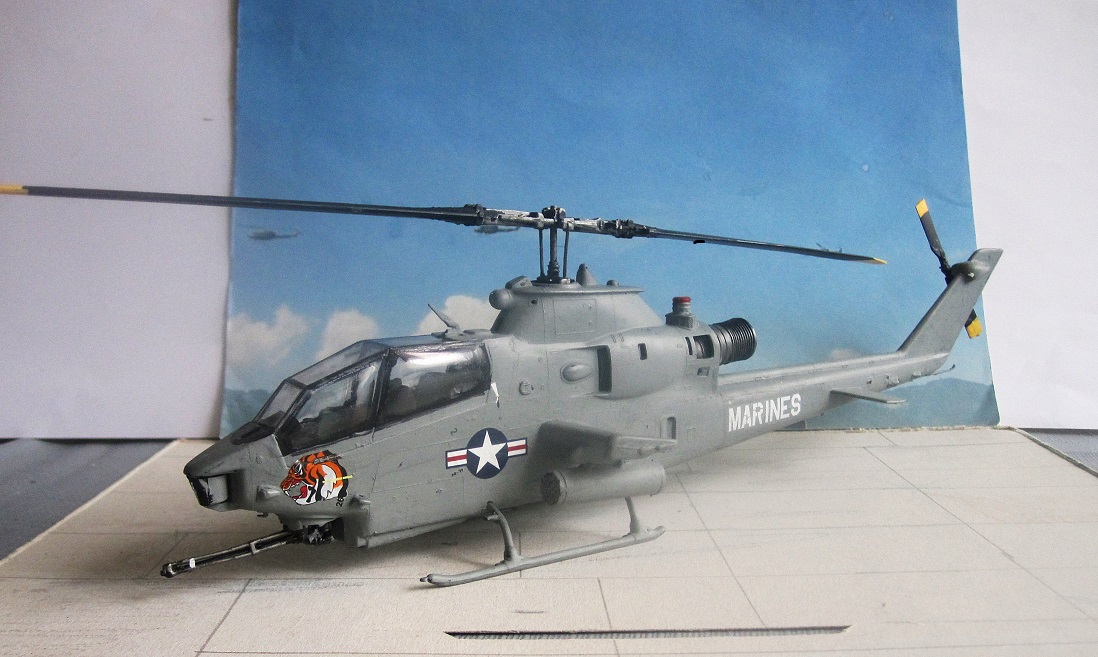 Mal ein Modell was leider daneben gagangen ist. Es soltte die AH-1 Cobra von Red Bull werden. Leider haben sich die Abziehbilder nich verabeiten lassen. Sehr dünn und haben sich eingedreht.Daher eine fiktive Notmarkierung.
