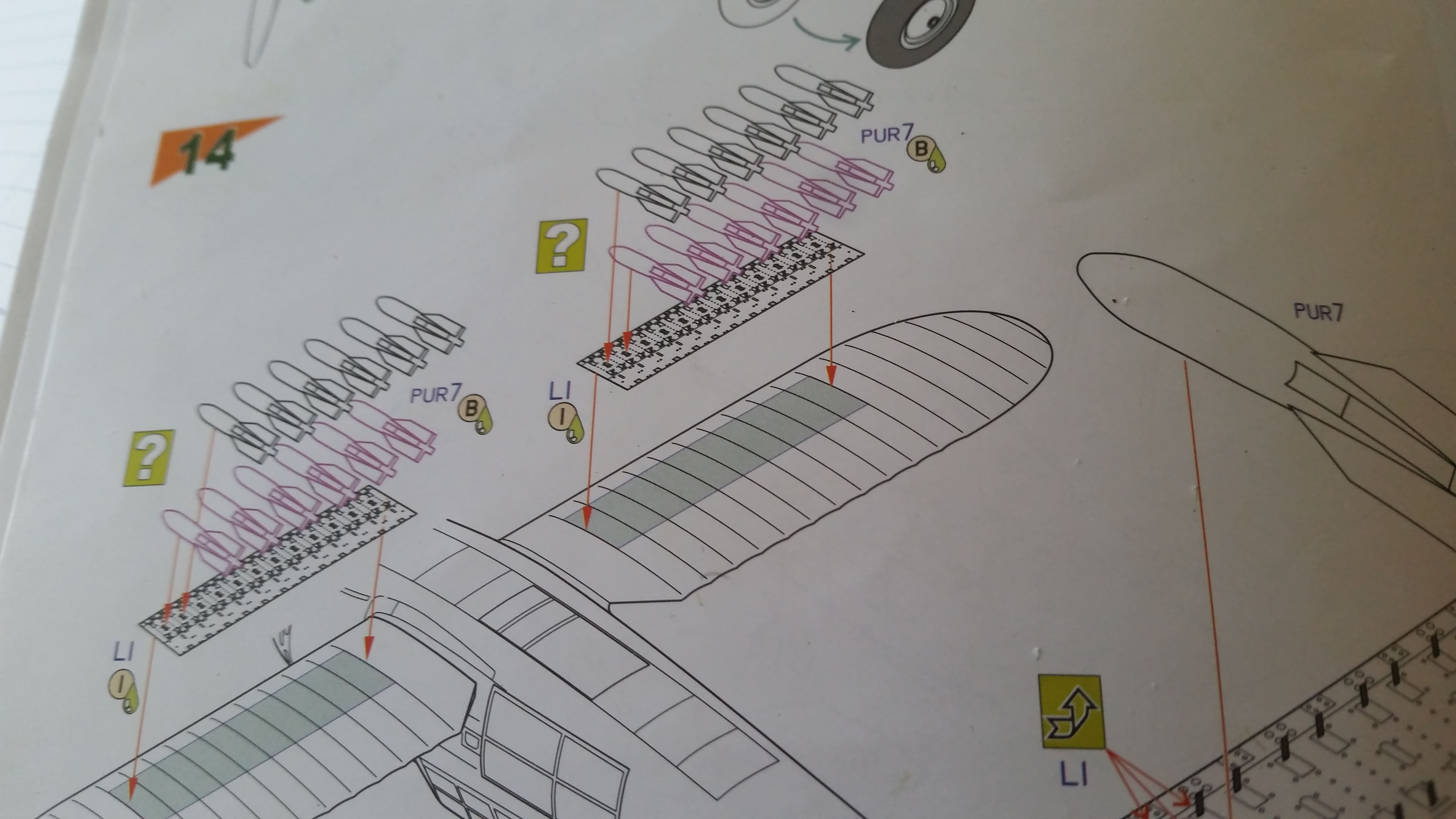 Ja, stimmt. Ist mir beim Heraufbringen in die Galerie auf die Treppe gefallen. Hab kurz daran gedacht, alles hinzuwerfen, aber nach der ersten Aufregung habe ich mich dann doch anders entschieden. Um die abgebrochenen Teile war auch viel Farbe abgeplatzt. Mit den Bomben ist das eeh sehr merkwürdig. Eigentlich soll der Bomber ja 12 Bomben transportiert haben. Es liegen aber 24 Resin-Bomben dabei???