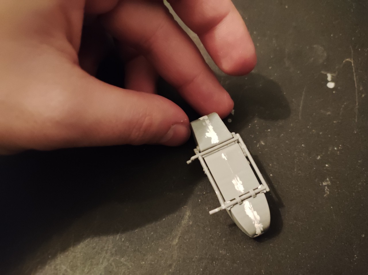 Zu Spachteln. Durch das ich zunächst den Seitenschneider verwendete, wurden die Teile leicht beschädigt und die Passung ist nicht 1000% gut.
