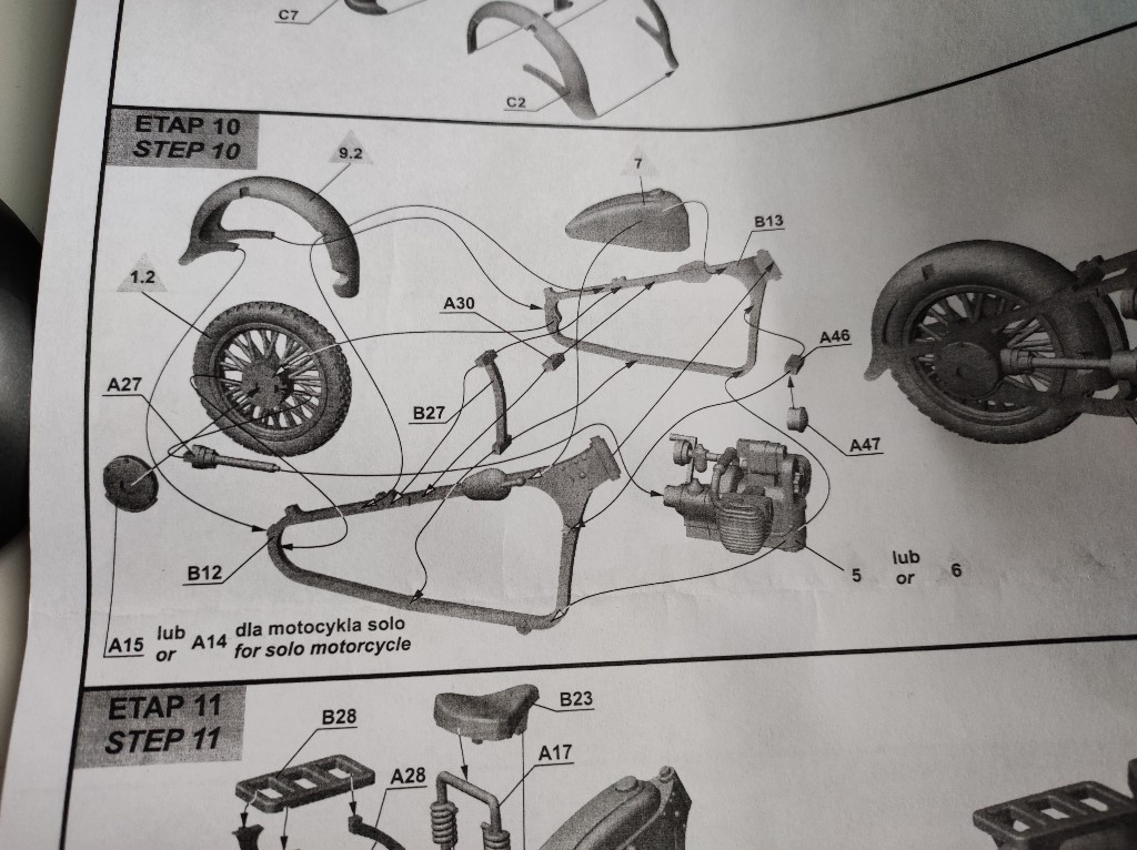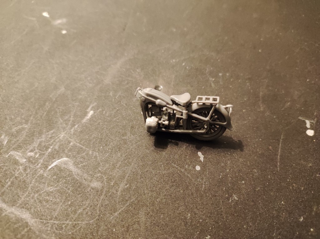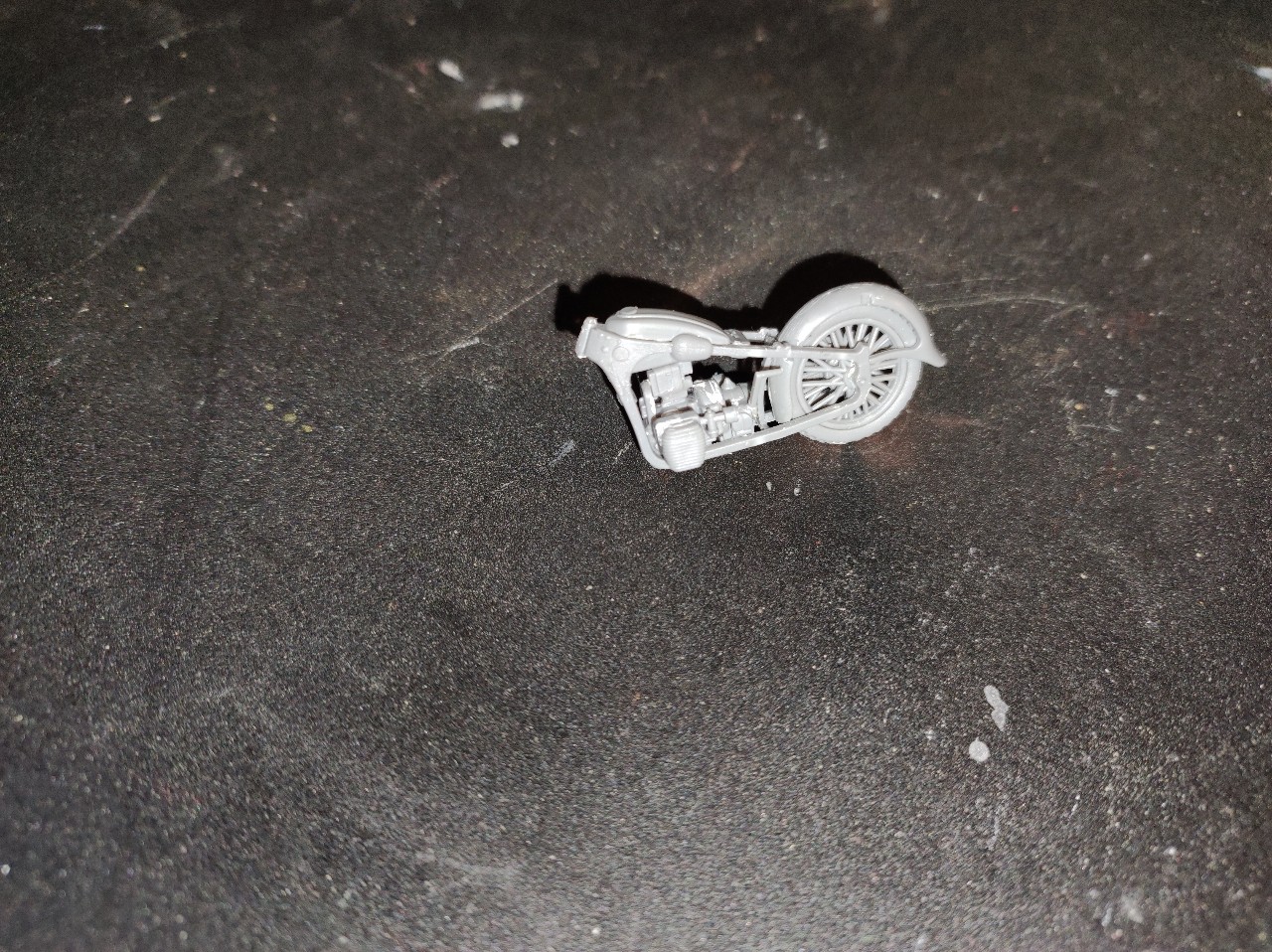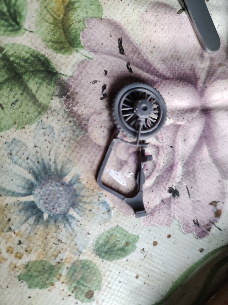 Dann kam der Radkasten an den Beiwagen, hier gibts wieder richtig kleine Teile. Bei dem Motorrad verbringe ich mehr Zeit auf dem Boden als am Basteltisch